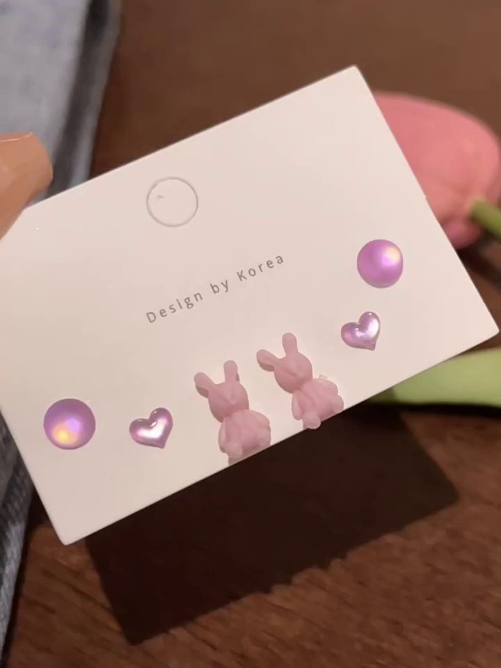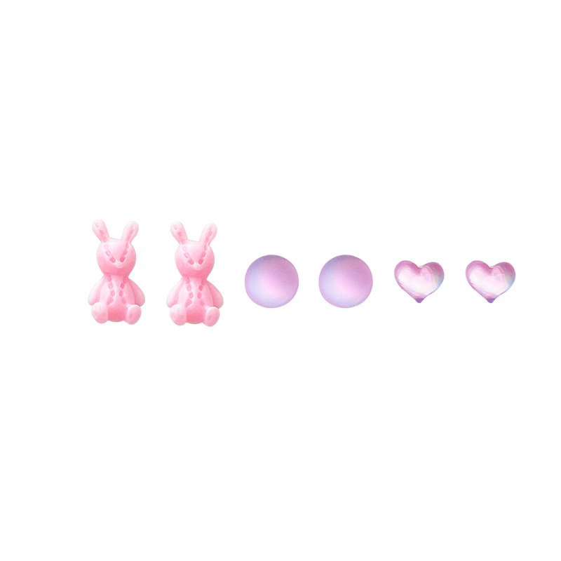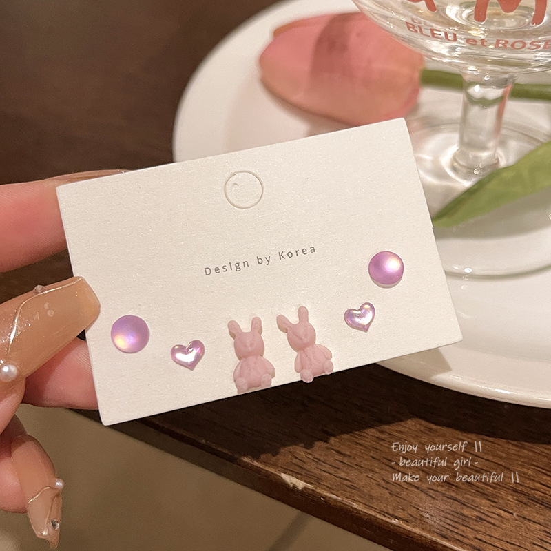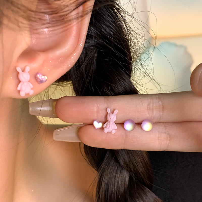 S925银针养耳洞睡觉免摘渐变色耳钉耳饰简约可爱小兔子套装耳钉女