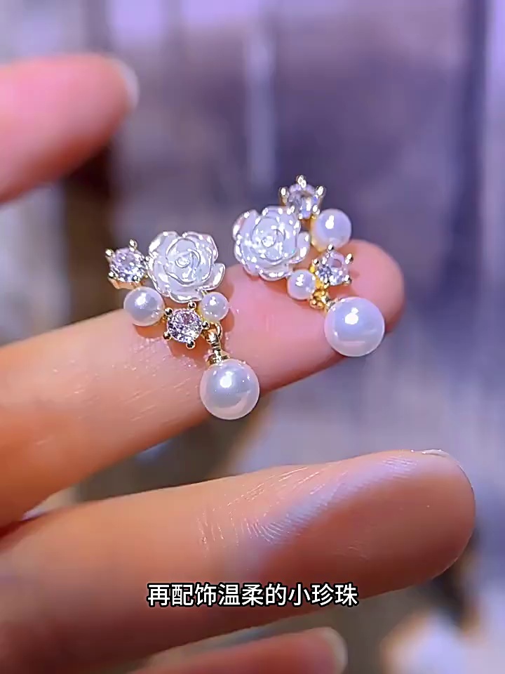 S925银针轻奢小众高级设计感珍珠耳环耳饰韩系爆款小清新花朵耳钉