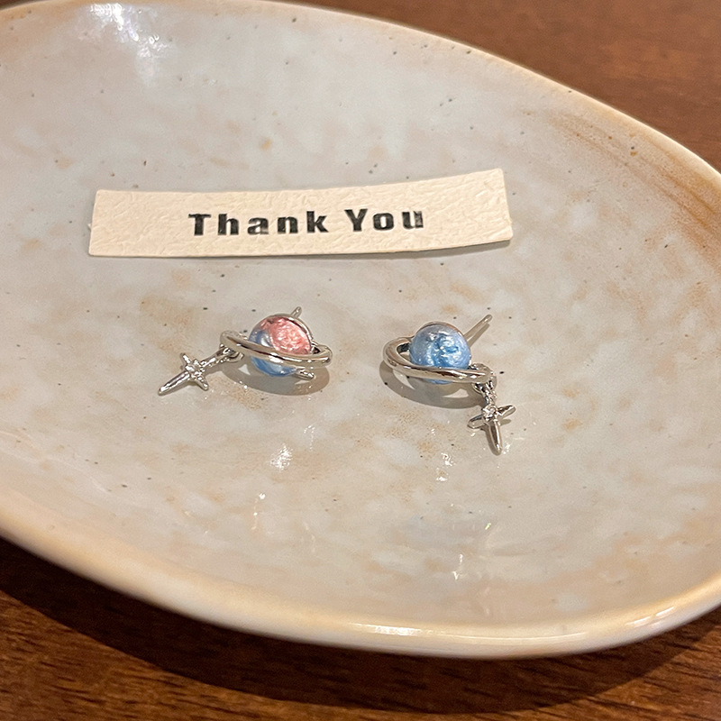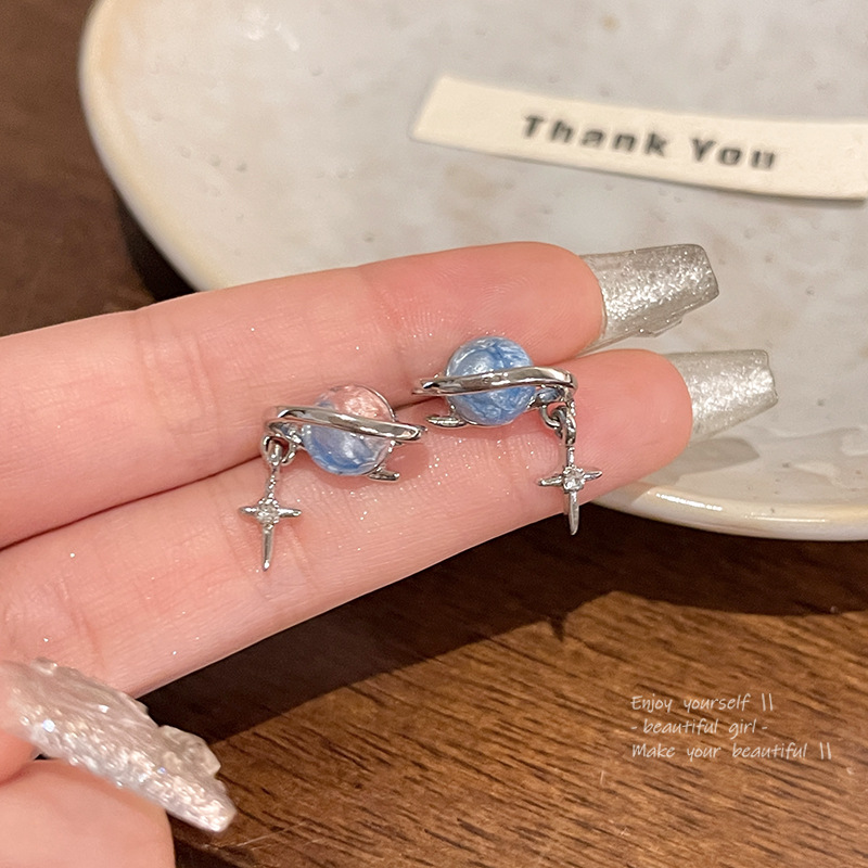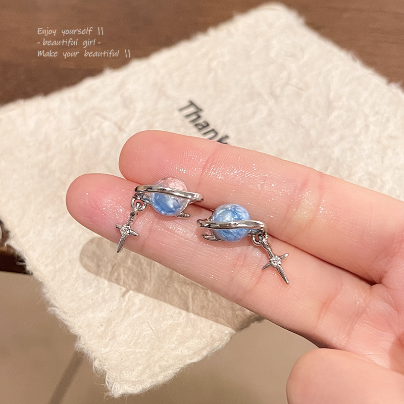 S925银针百搭气质星星耳钉网红同款耳饰品轻奢小众蓝色星空耳环女