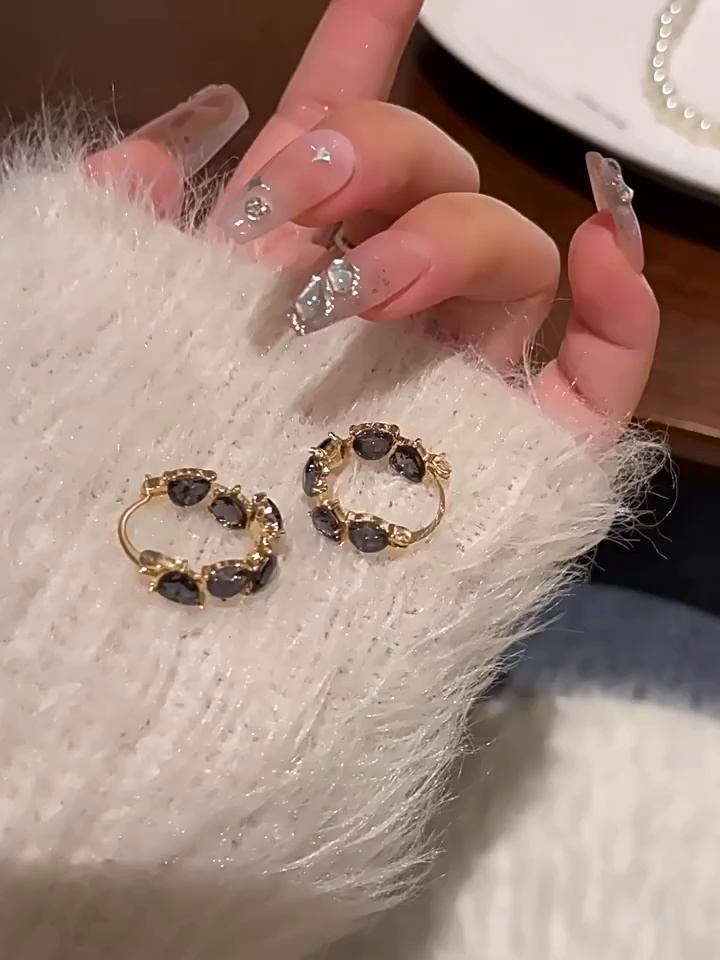 轻奢小众网红同款耳钉耳圈批发韩国新款时尚气质黑色爱心锆石耳环