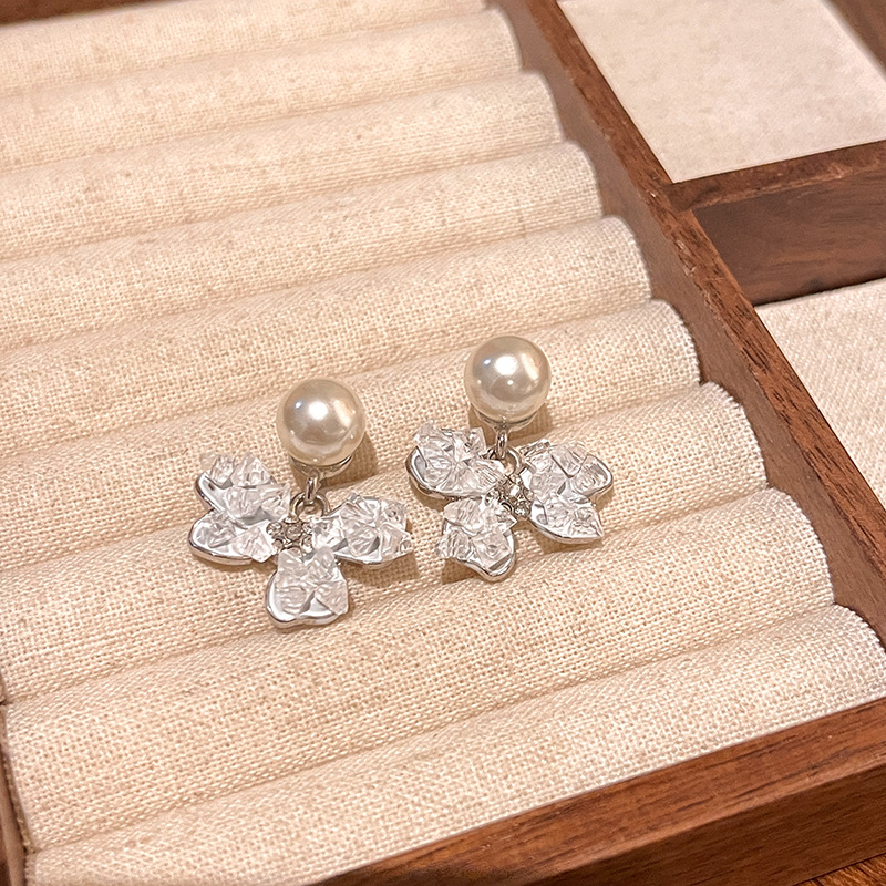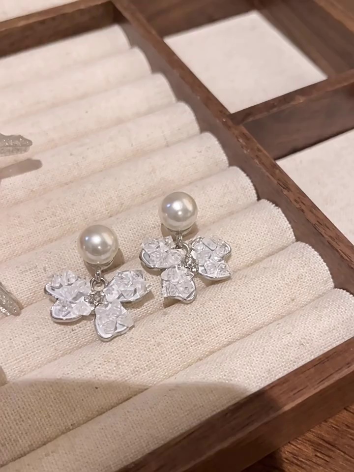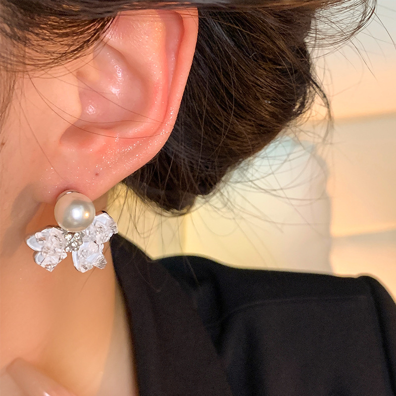 S925银针韩系高级设计感珍珠耳钉耳饰轻奢小众水晶碎钻蝴蝶结耳环