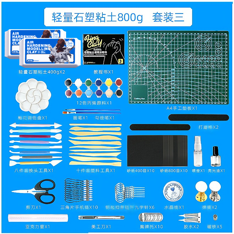 轻量石塑黏土diy全套装工具材料包成品批发亮油戒指免烤石塑粘土