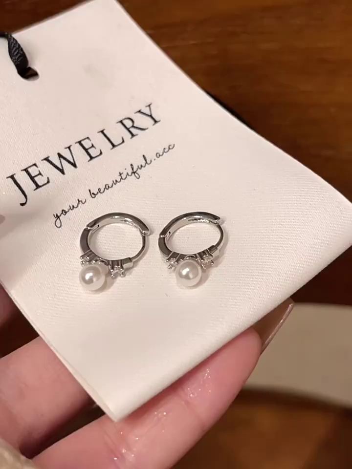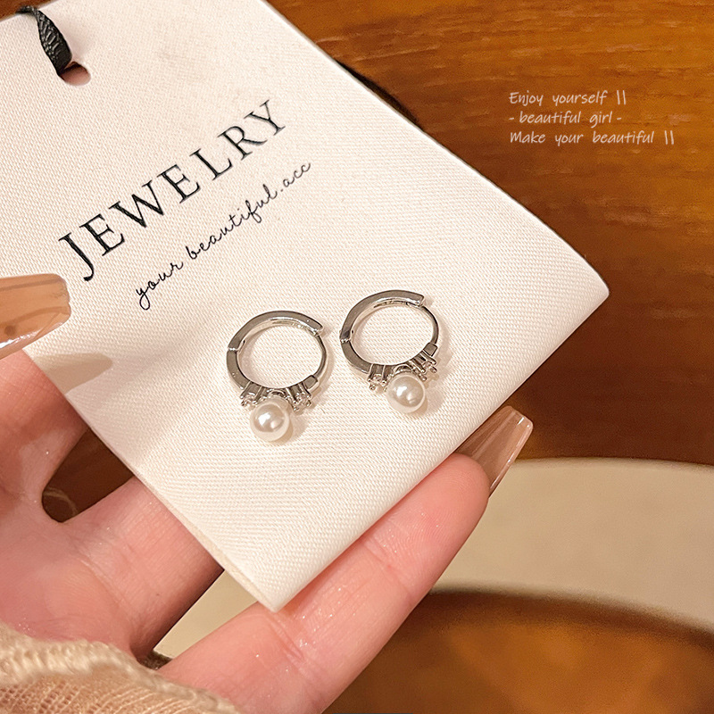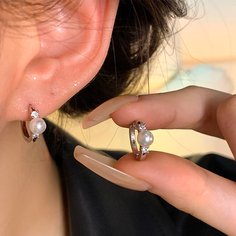 ins潮百搭简约港风耳环轻奢小众高级设计感锆石珍珠耳扣耳钉女