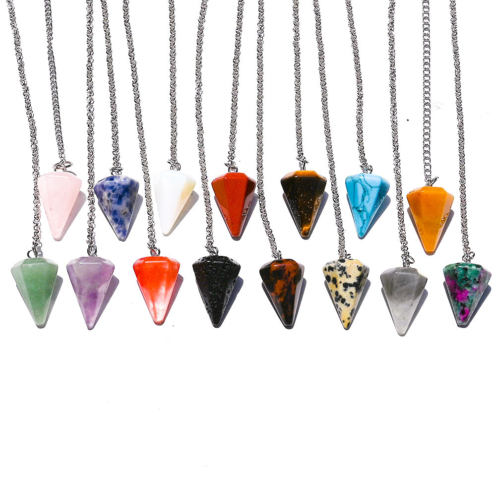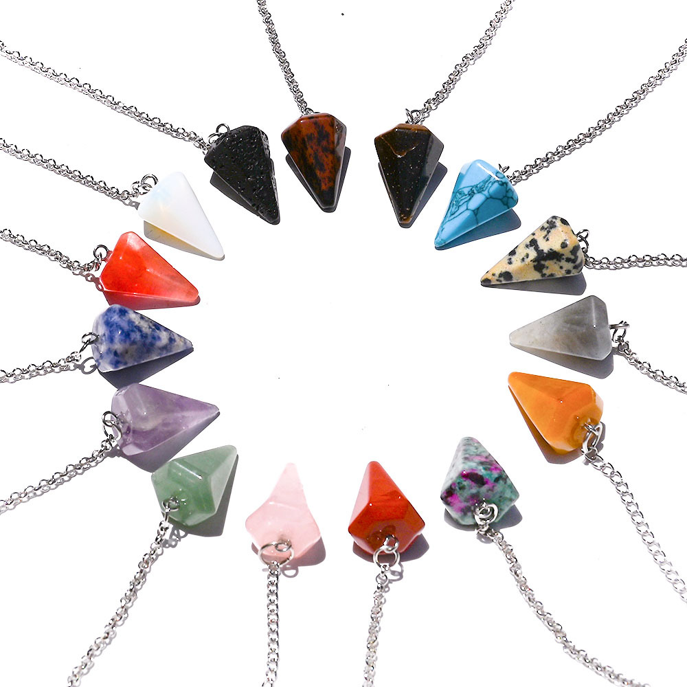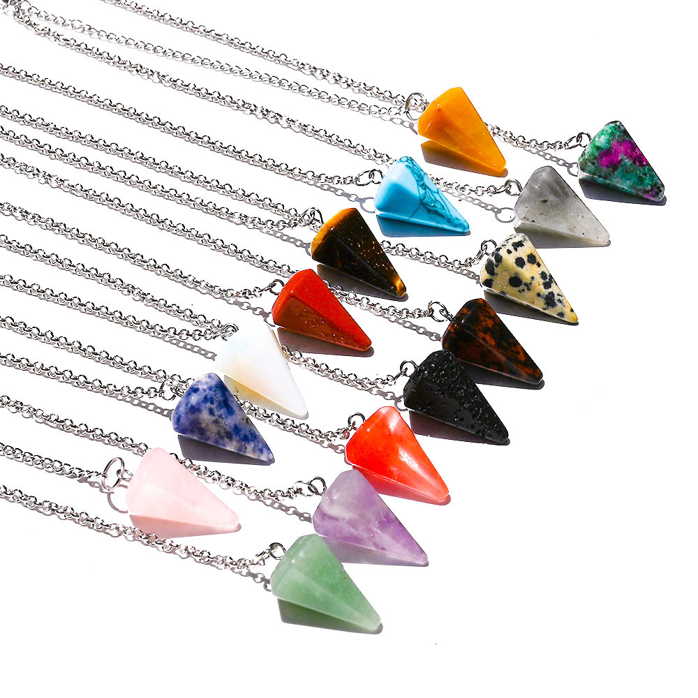 天然水晶六角锥粉晶虎眼灵摆 玛瑙紫晶宝石锥形吊坠DIY水晶坠子