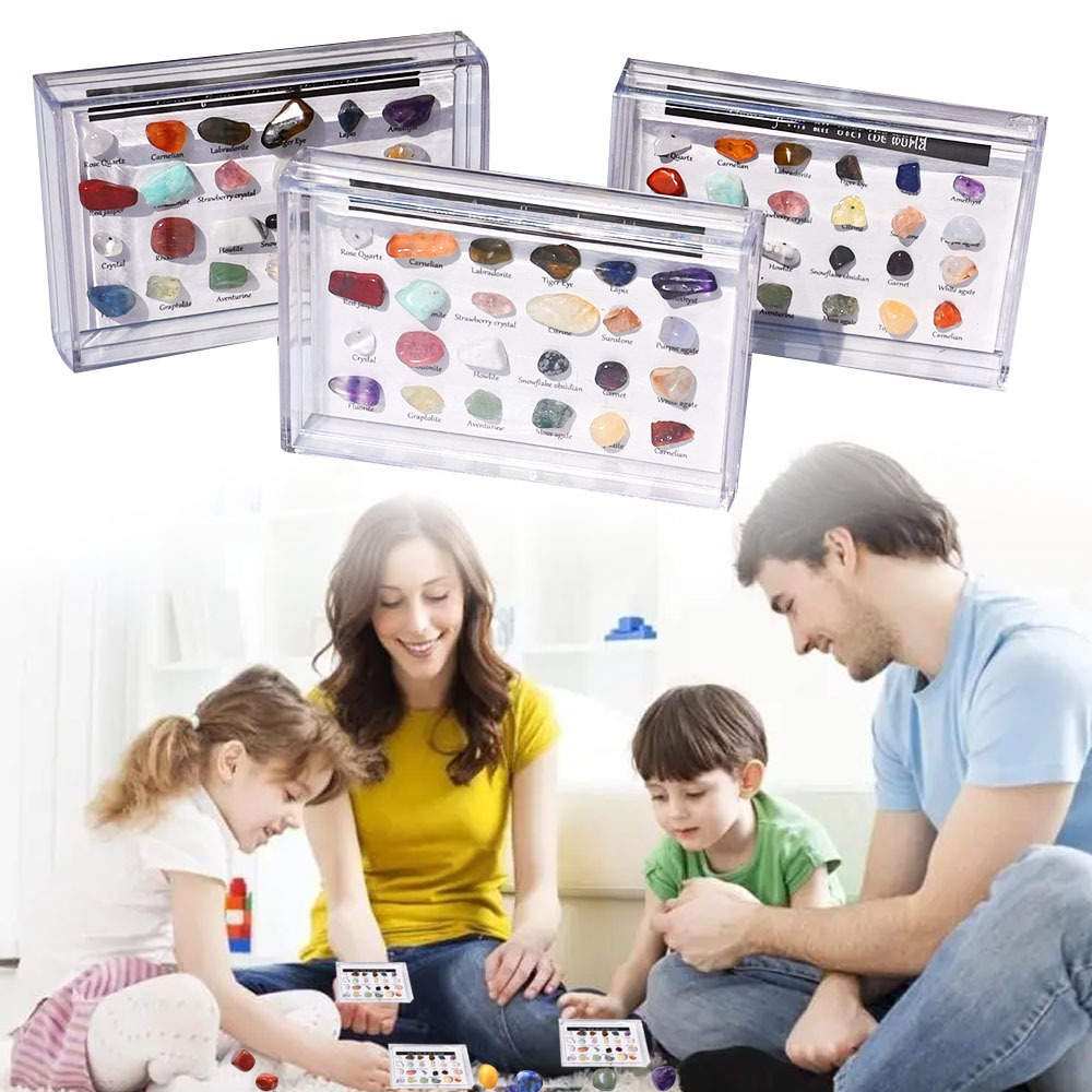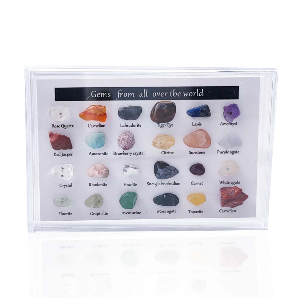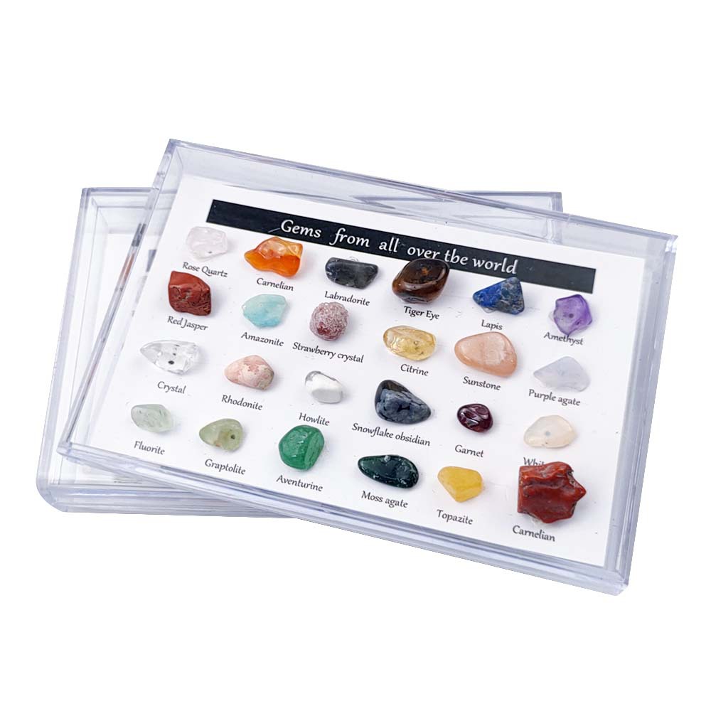 天然水晶玛瑙石宝石24种矿石标本 矿物岩石抛光石头 地质教学材料