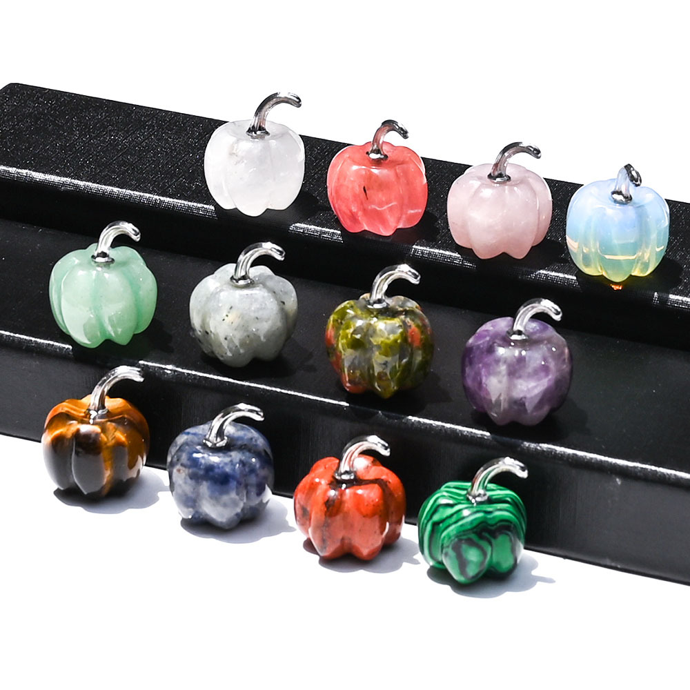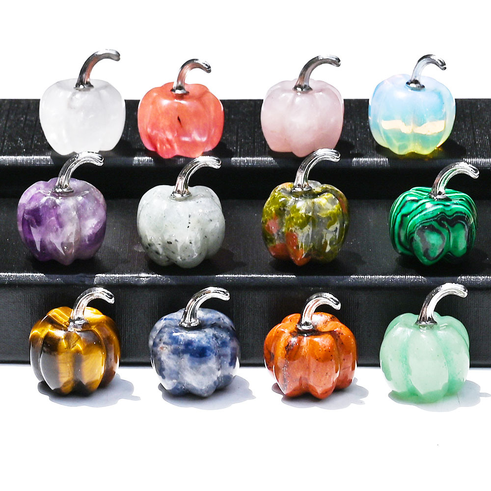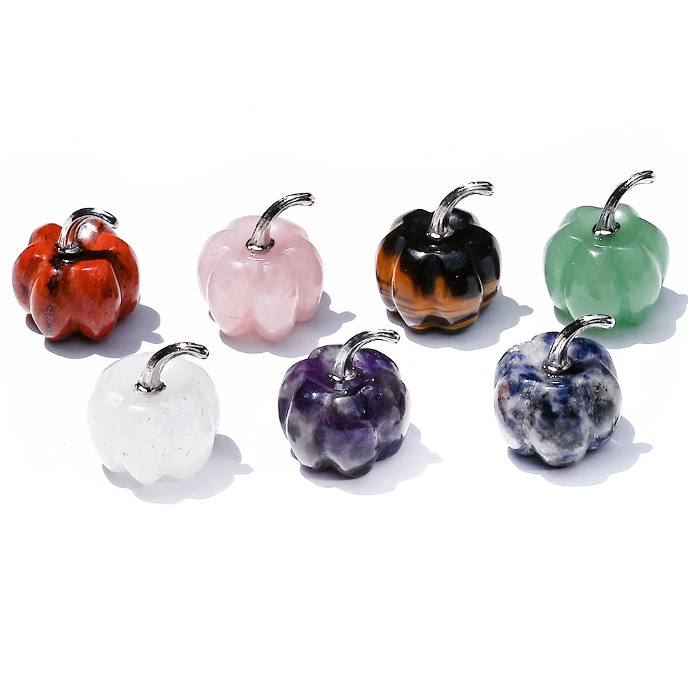 天然水晶南瓜雕刻件 2cm紫晶粉晶原石雕刻万圣节迷你创意家居装饰