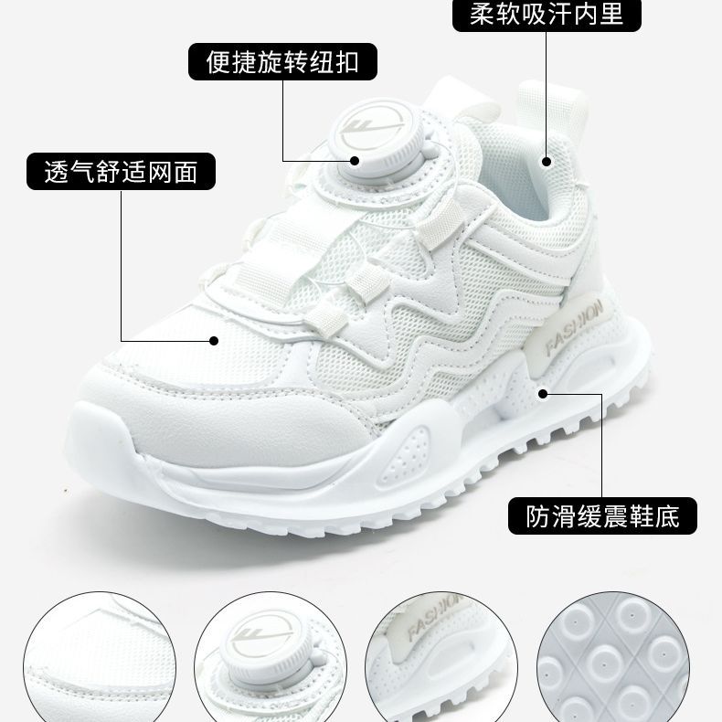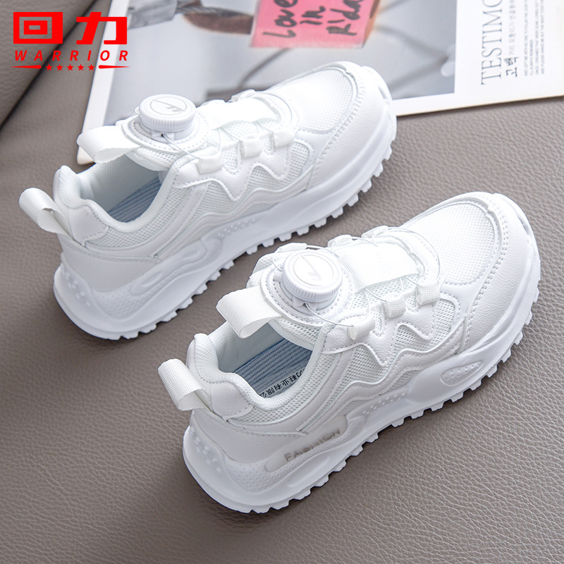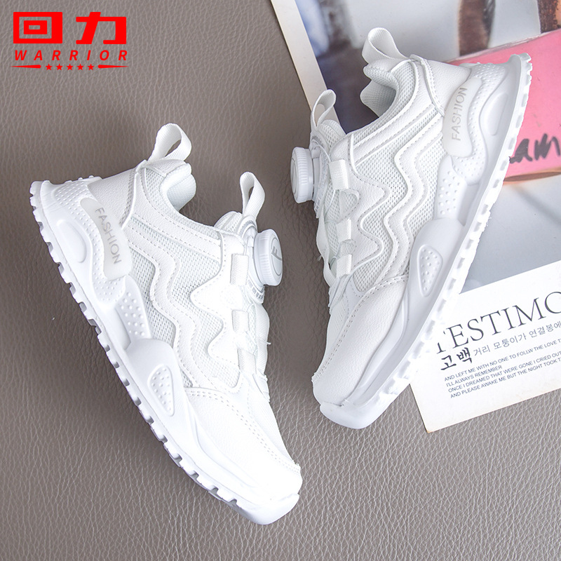 回力儿童运动鞋 网面透气校园小白鞋 男童女童纯色旋转钮休闲跑鞋