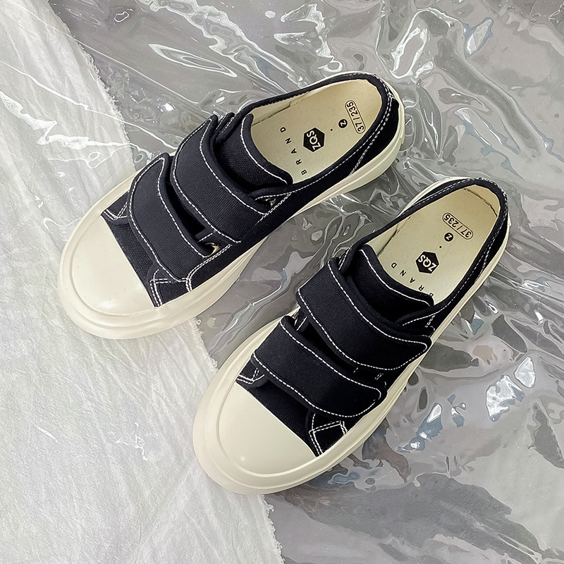 白鹿热卖大头魔术贴帆布鞋韩国小白鞋洛丽塔鞋2023新款懒人丑萌鞋