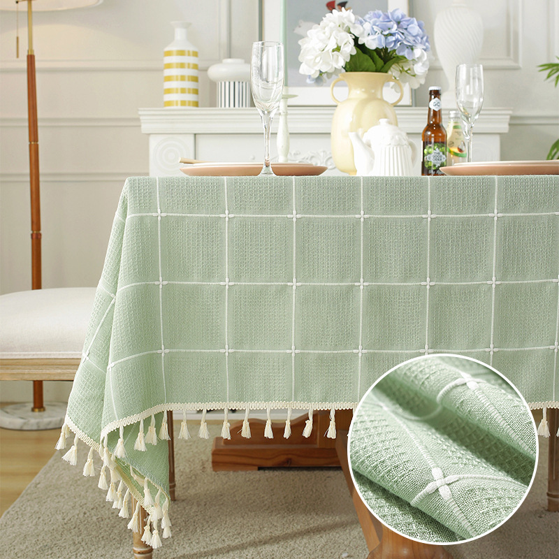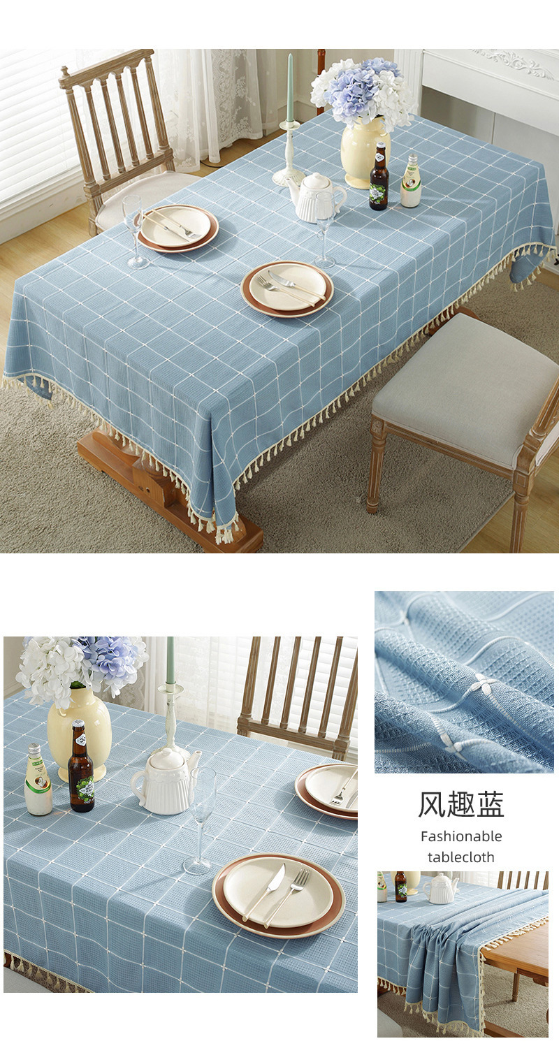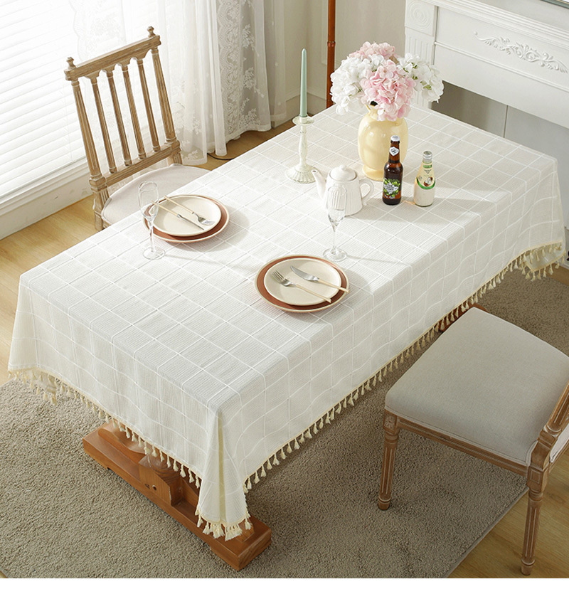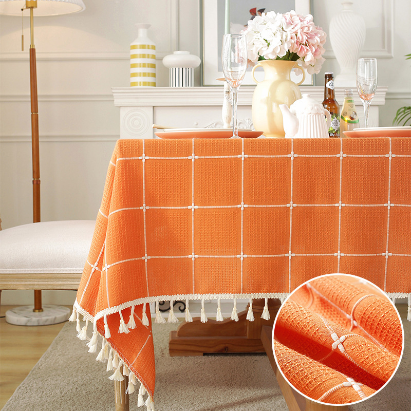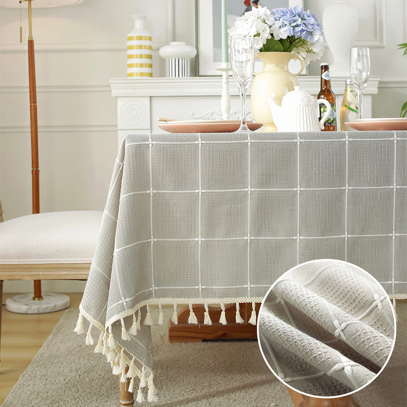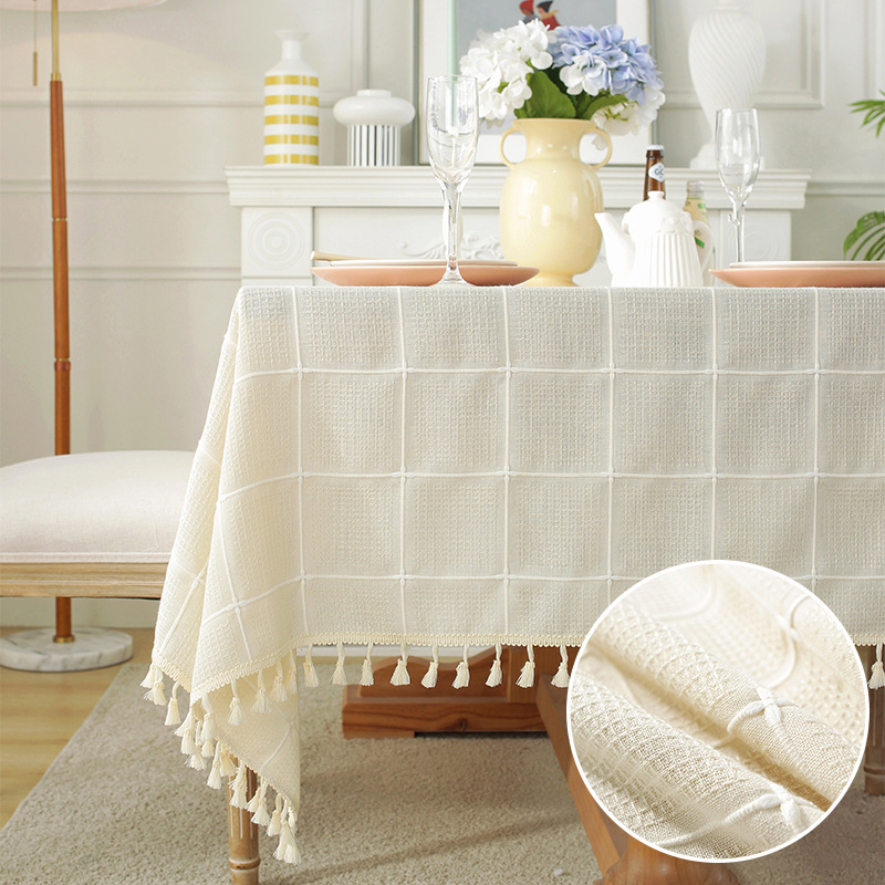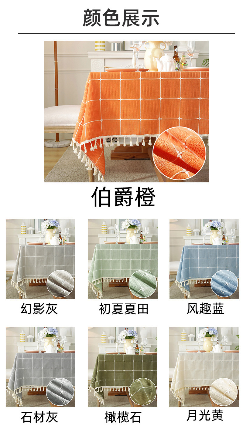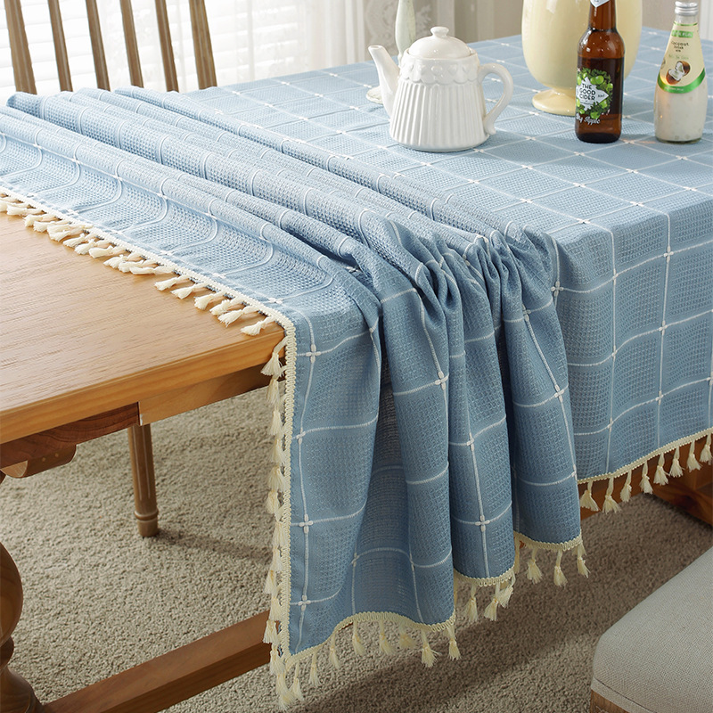 现代简约小清新桌布装饰毯餐桌布茶几布台布床头柜防尘华夫格现货