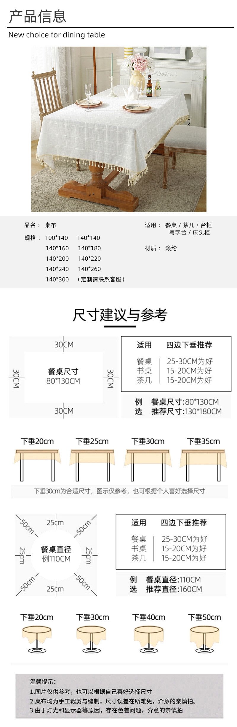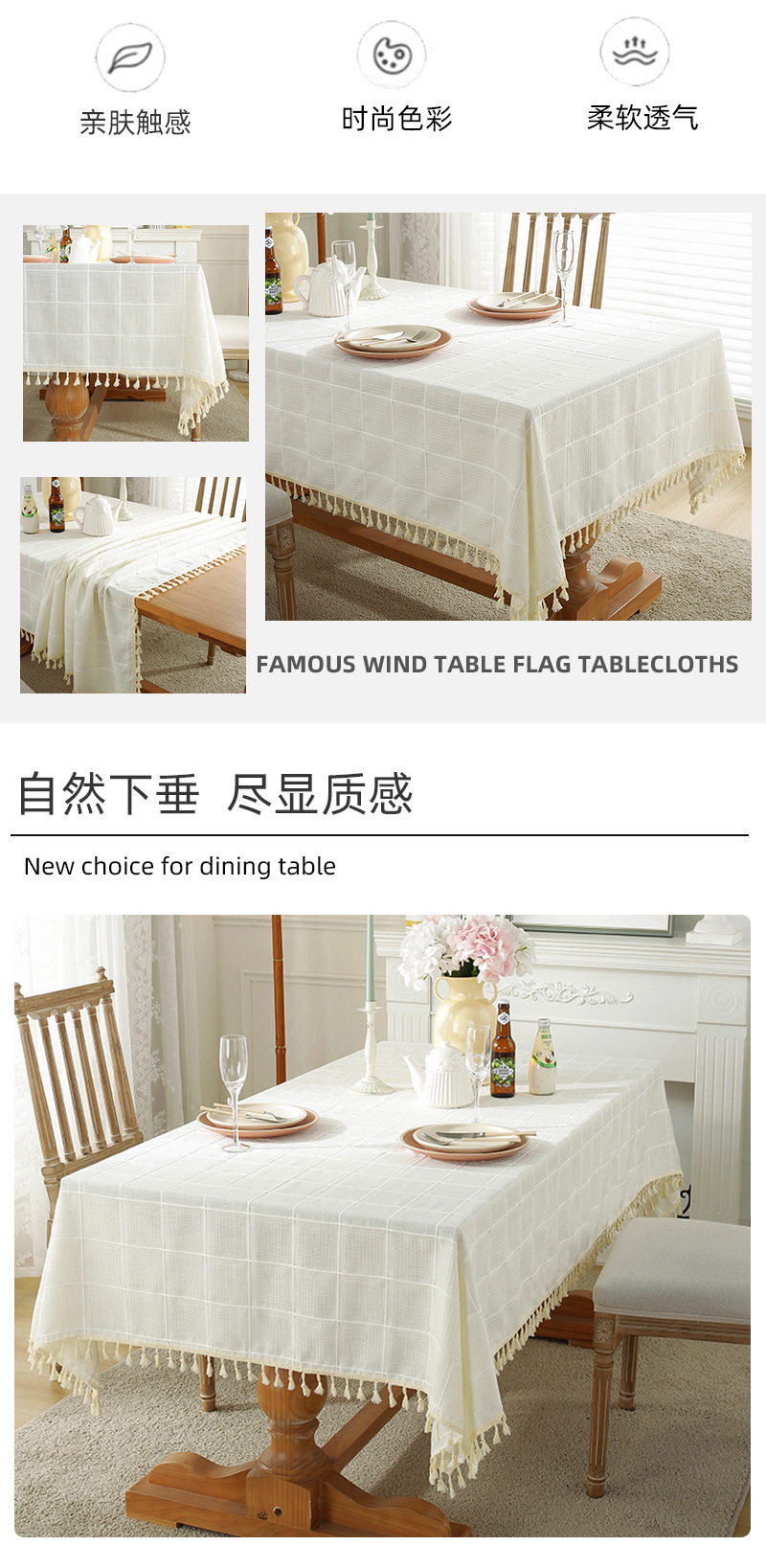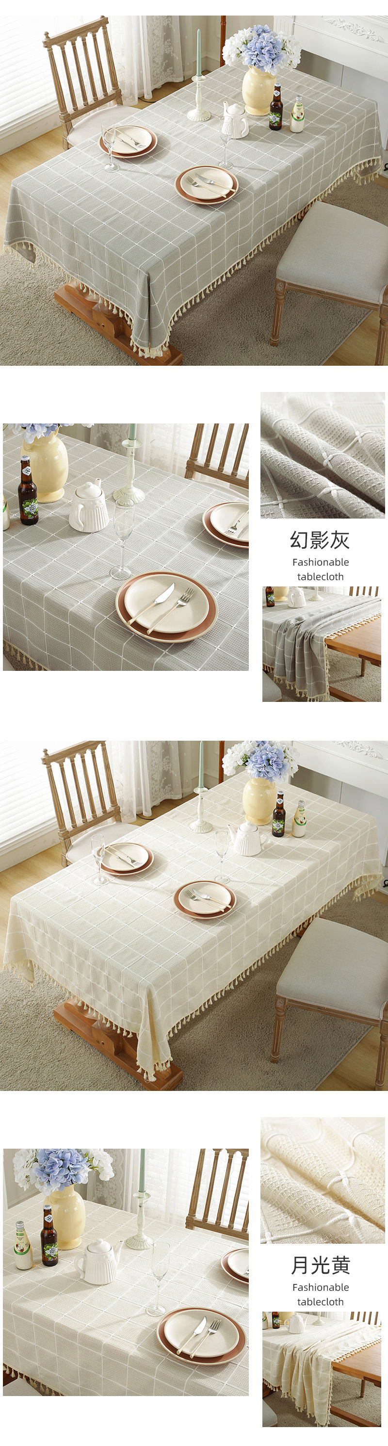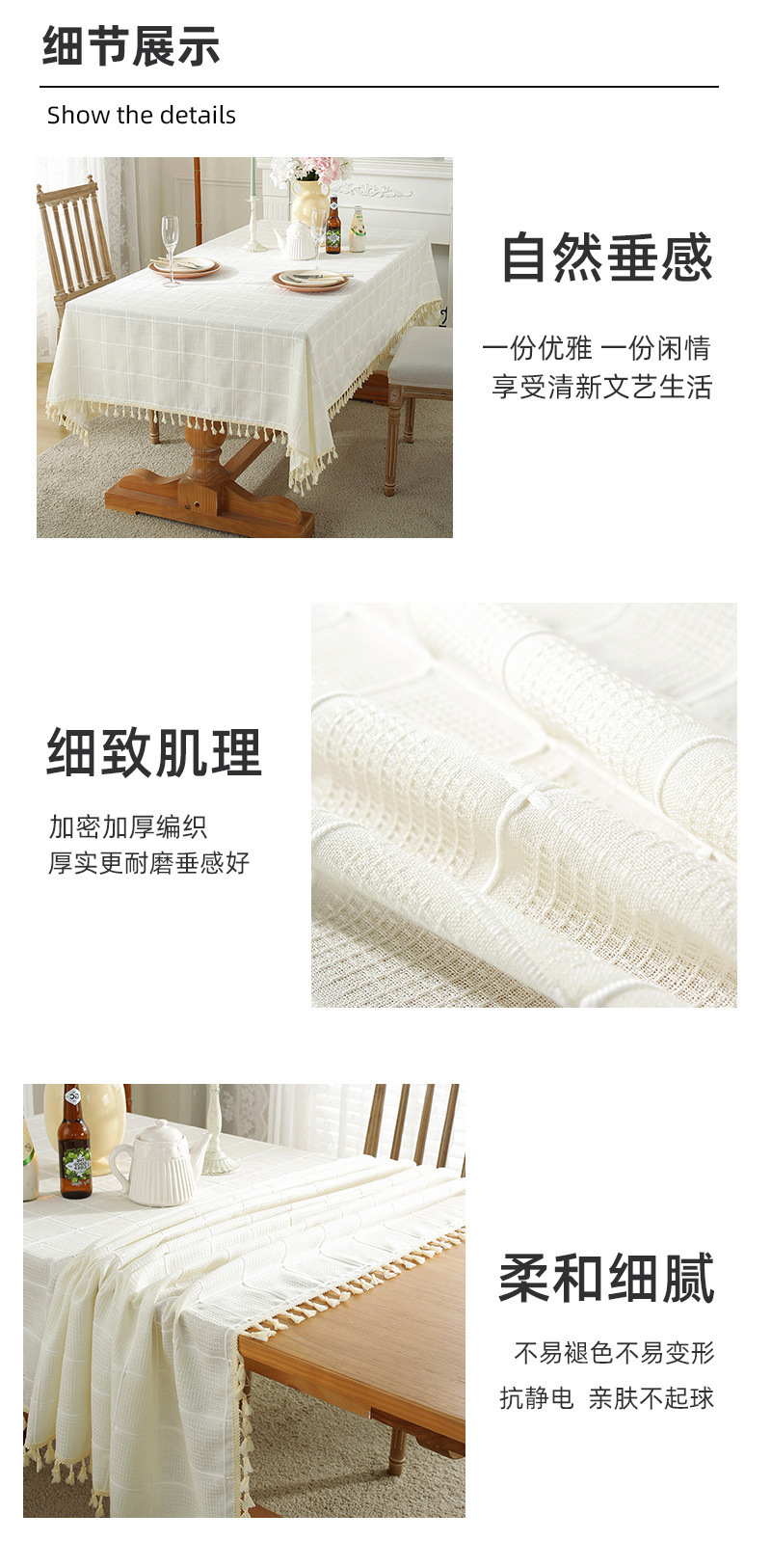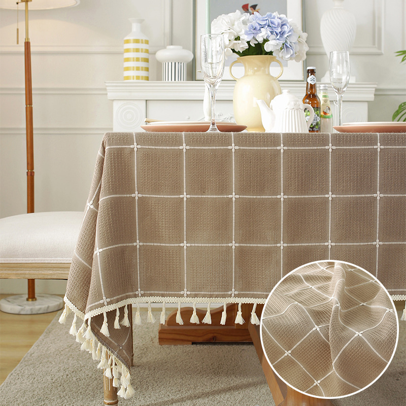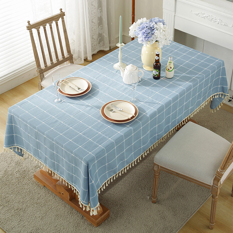 现代简约小清新桌布装饰毯餐桌布茶几布台布床头柜防尘华夫格现货
