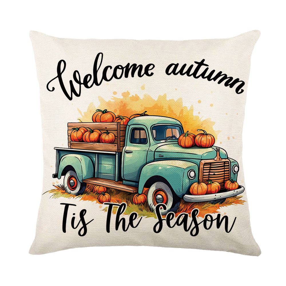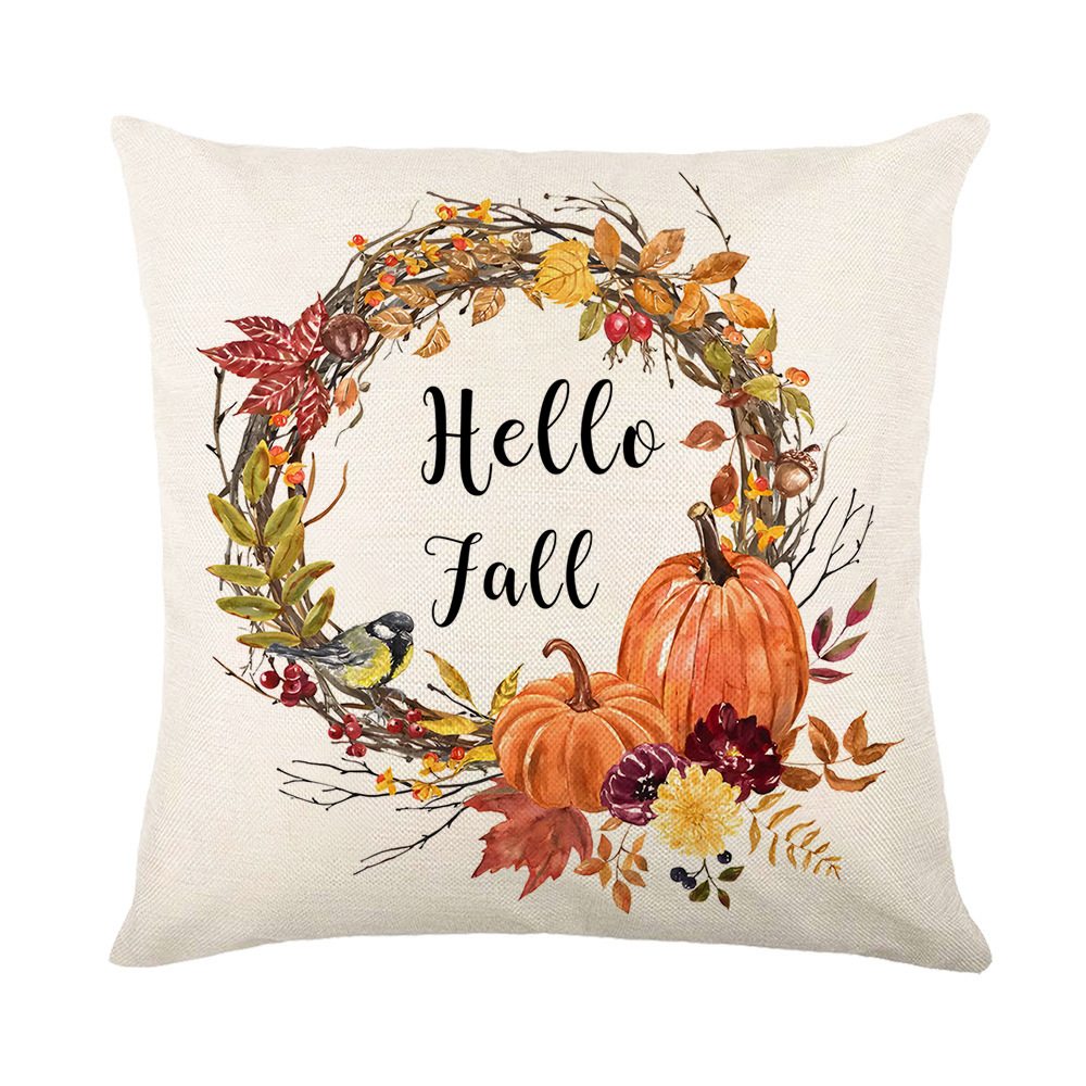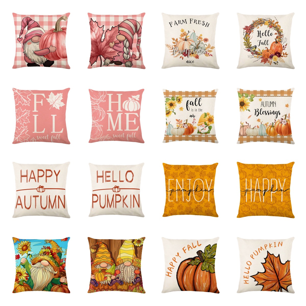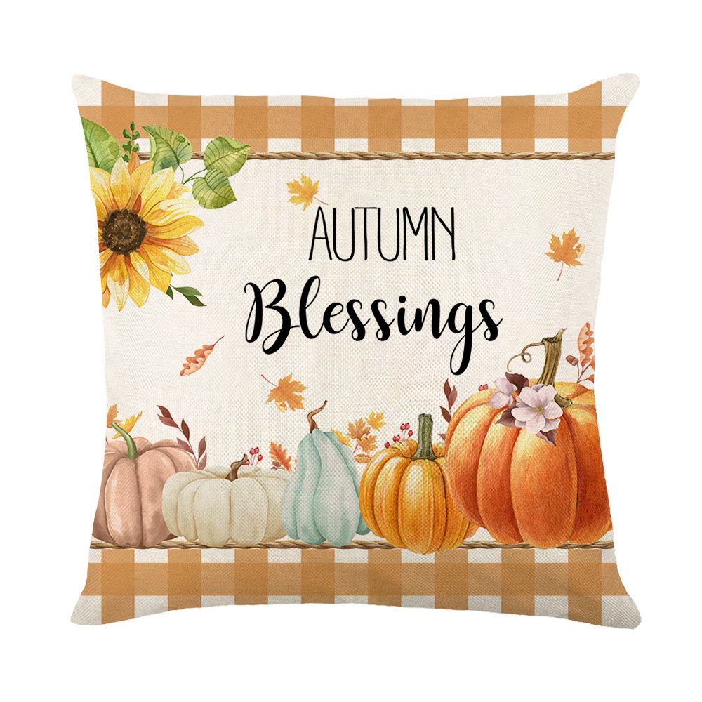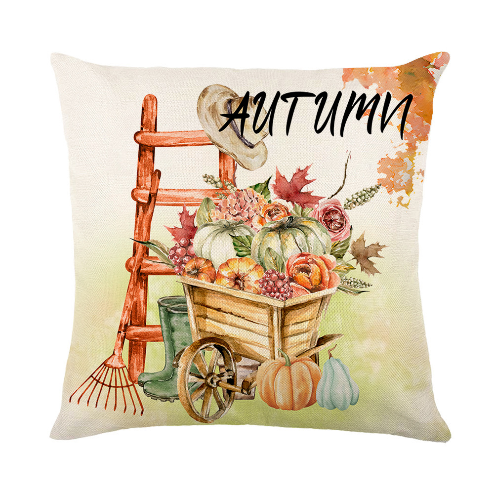 亚马逊跨境新款感恩节亚麻印花抱枕套家具沙发靠垫套卧室靠枕摆件