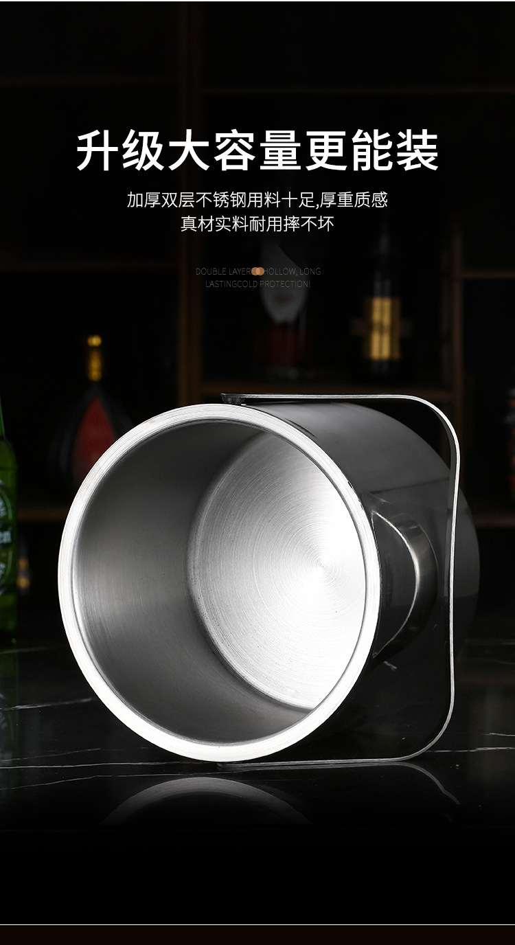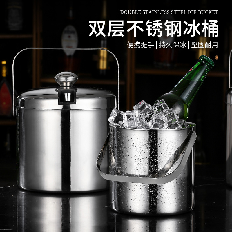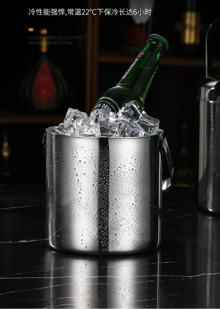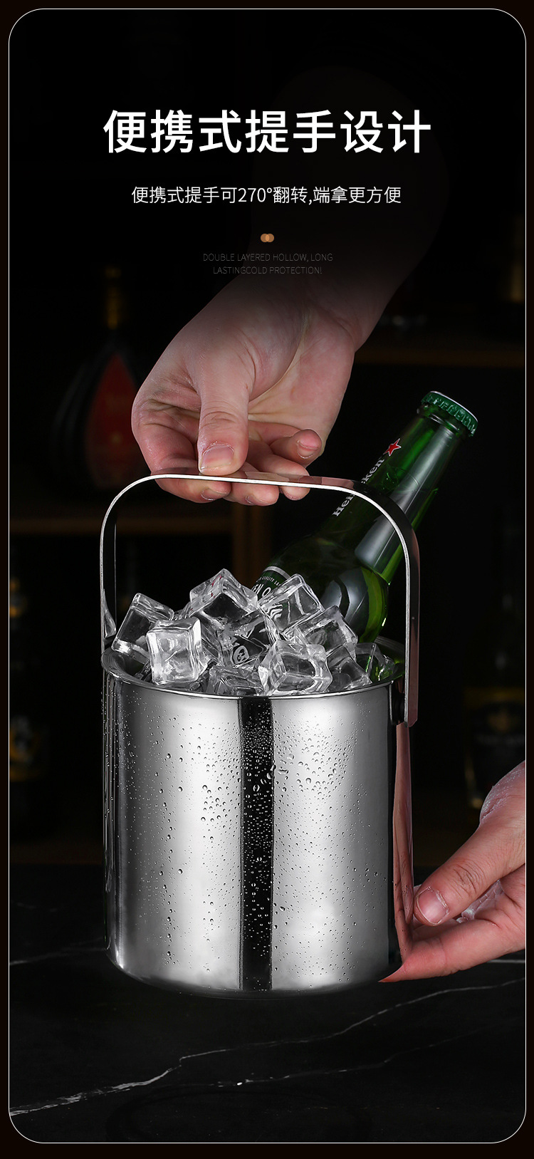 专供亚马逊304不锈钢冰桶双层加厚保冷手提带盖酒吧ktv香槟桶酒桶