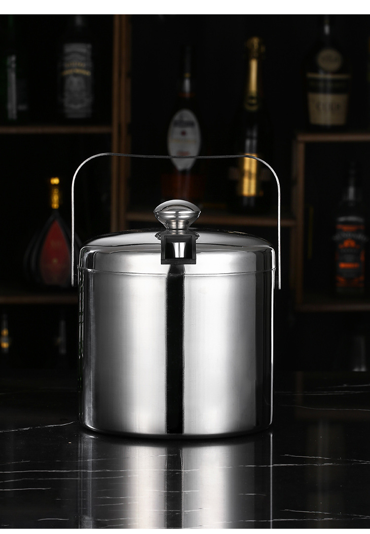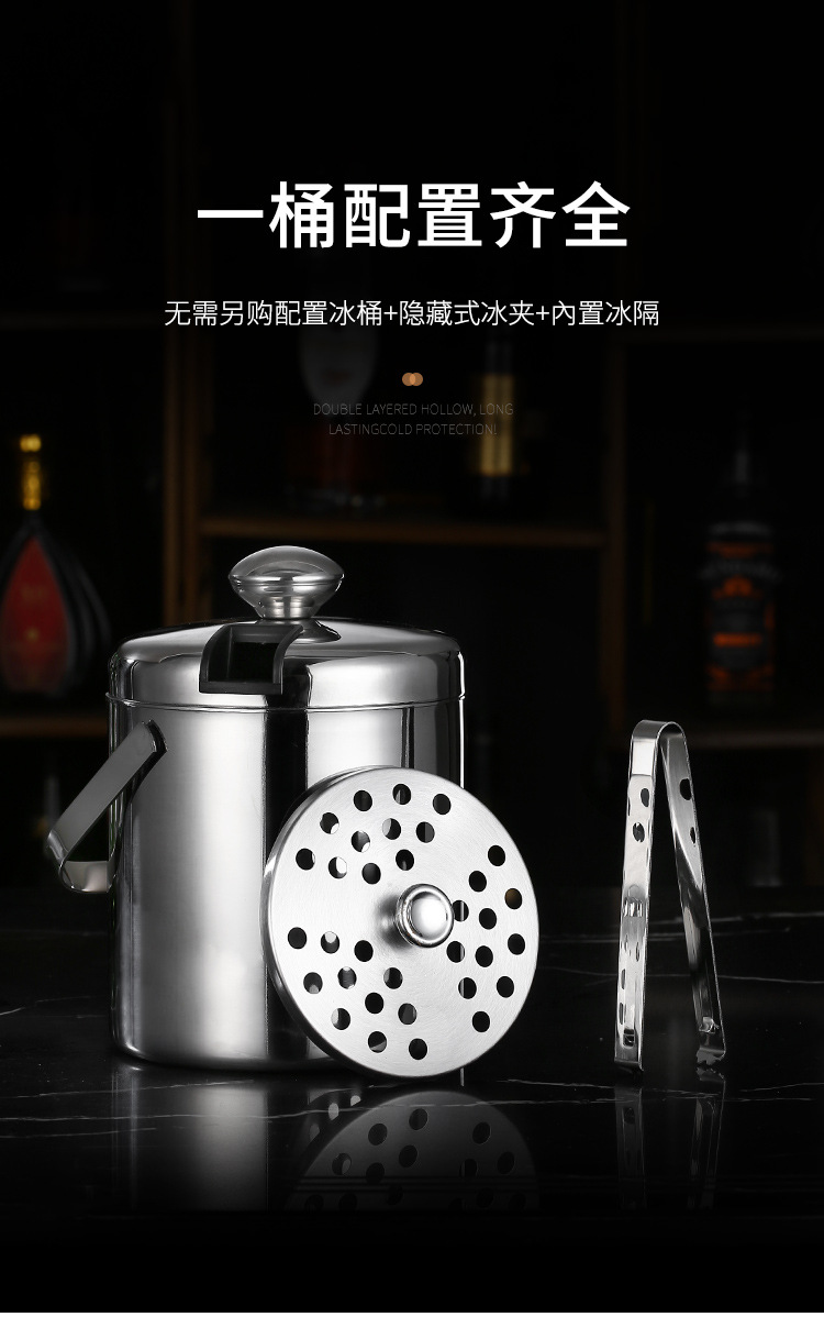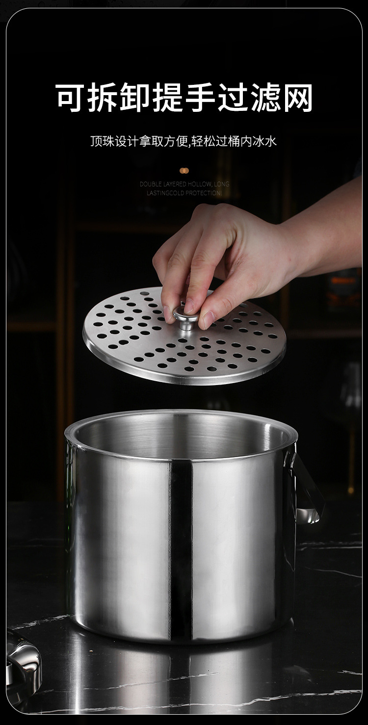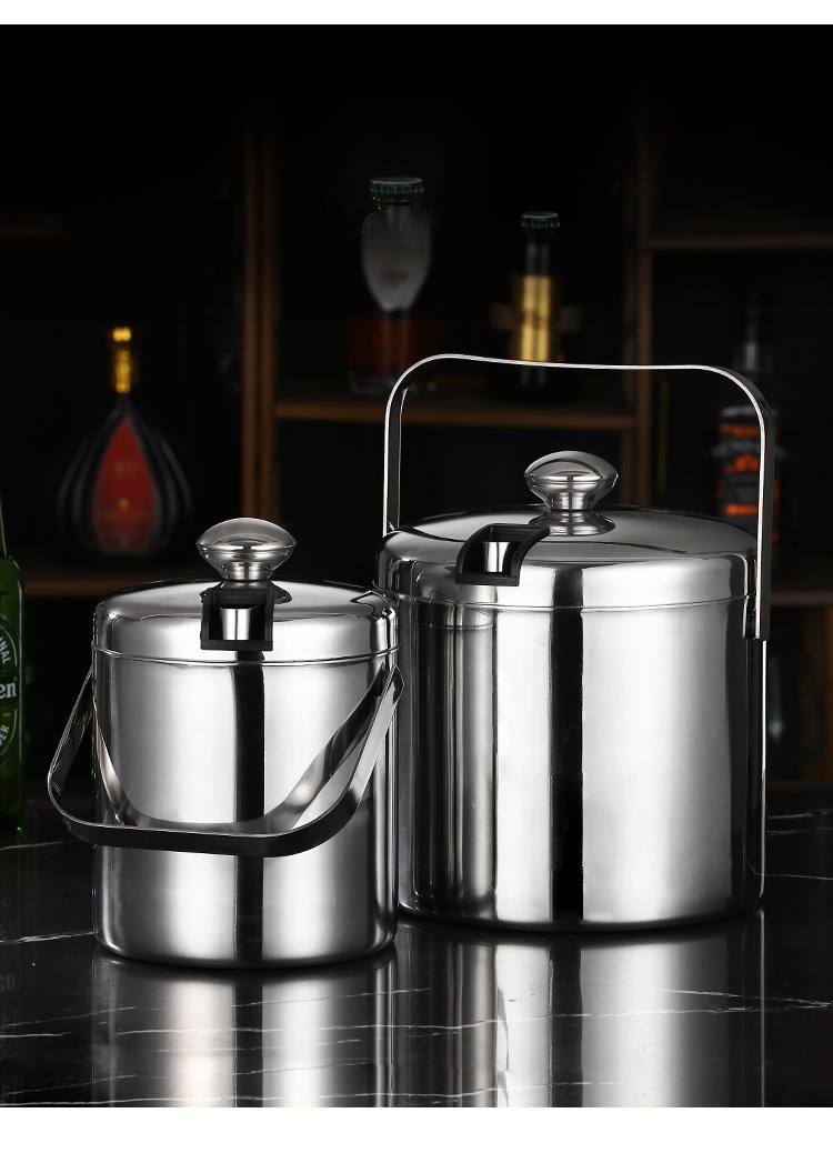 专供亚马逊304不锈钢冰桶双层加厚保冷手提带盖酒吧ktv香槟桶酒桶