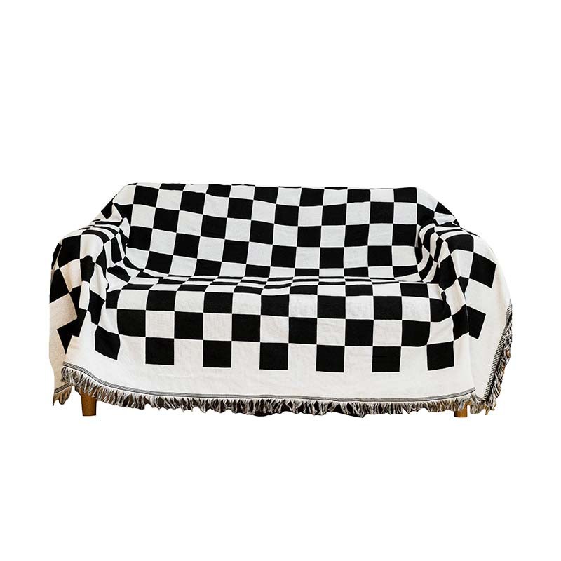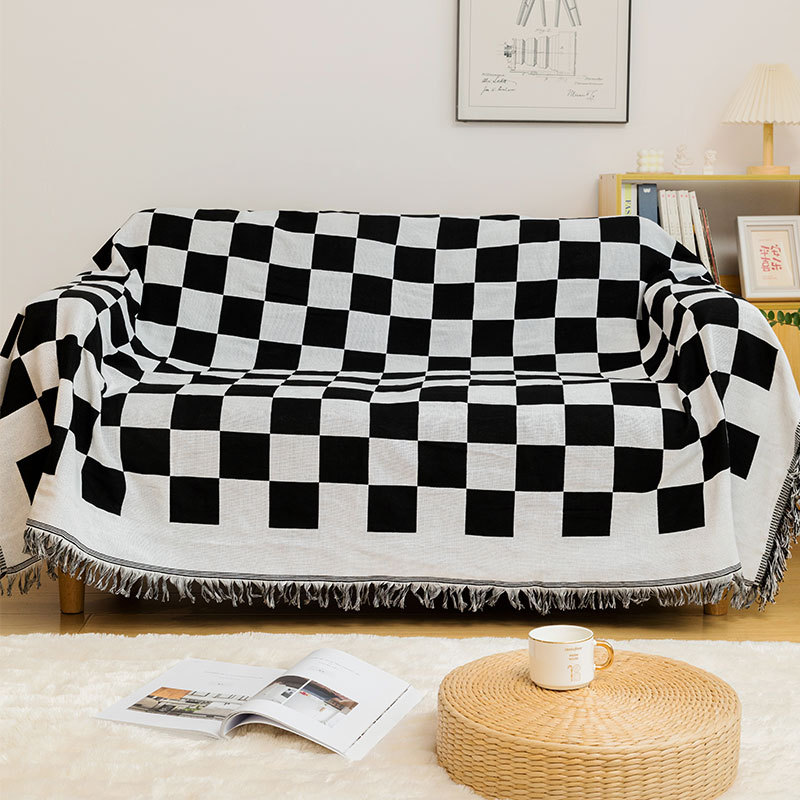 黑白棋盘格沙发盖布沙发巾四季通用全包沙发套罩时尚ins风空调毯