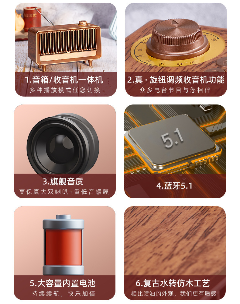 跨境复古创意B3收音机无线蓝牙音箱迷你桌面装饰礼品小音响低音炮