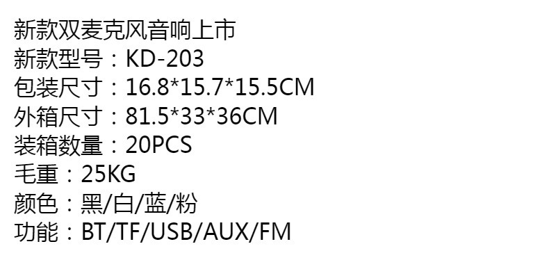 跨境KD-203蓝牙音箱一体机户外家庭聚会套装K歌双麦神器无线话筒