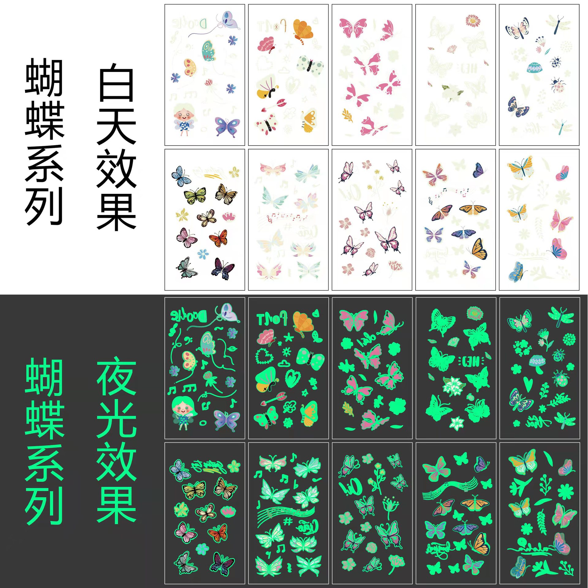 跨境现货儿童夜光纹身贴可爱卡通恐龙美人鱼独角兽高级感纹身贴纸