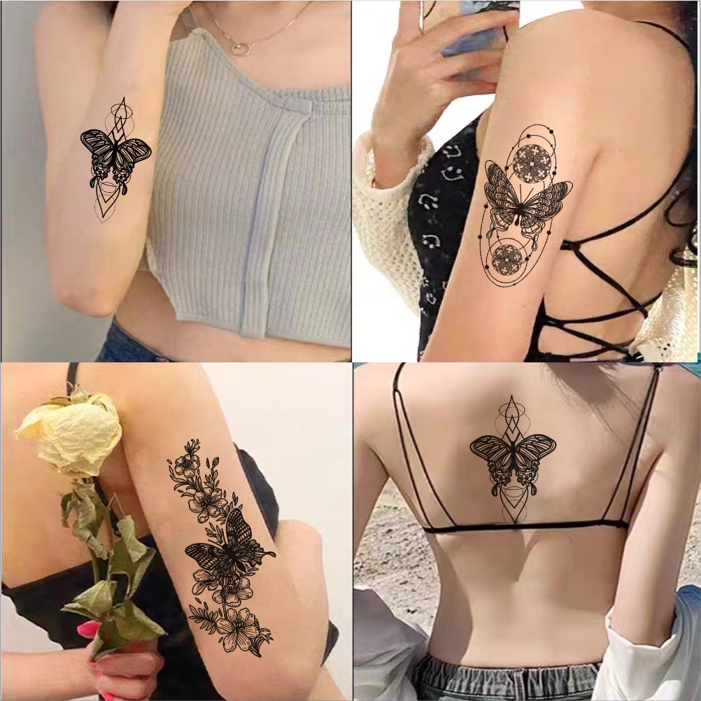 跨境新款黑色蝴蝶纹身贴高级感ins女孩手臂锁骨胸口临时纹身贴纸