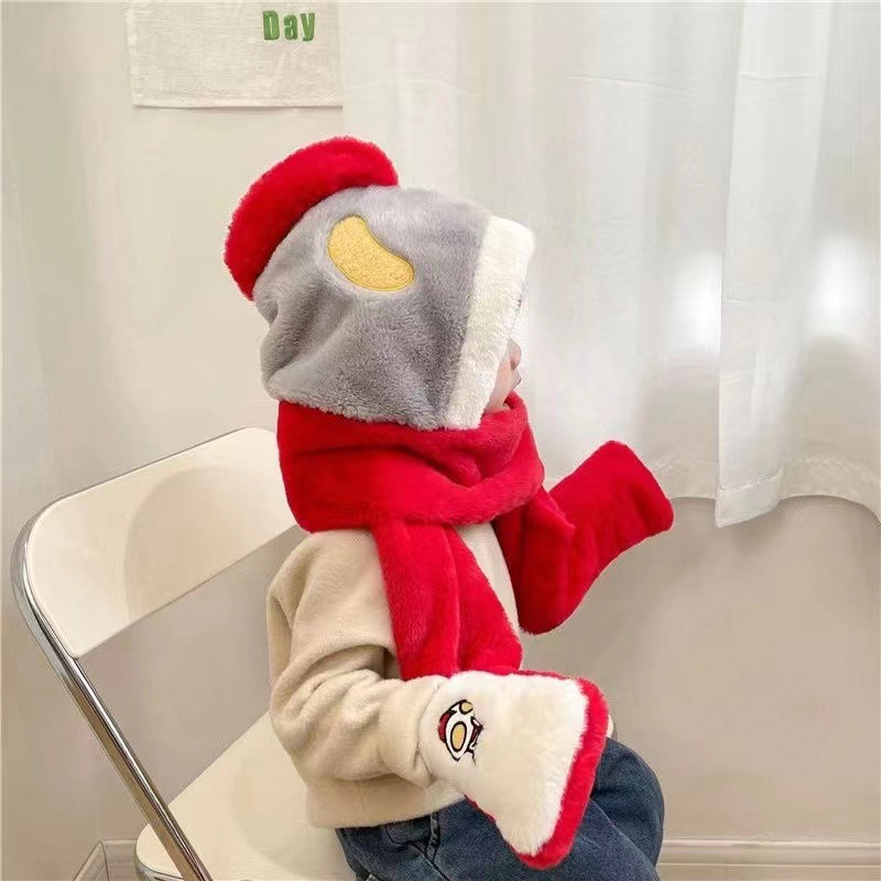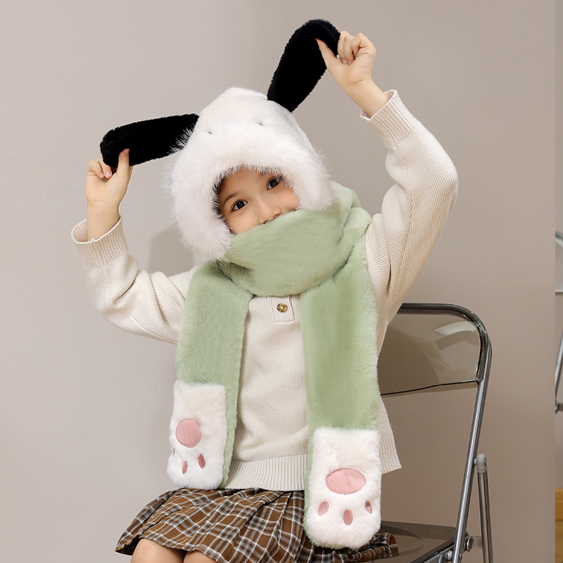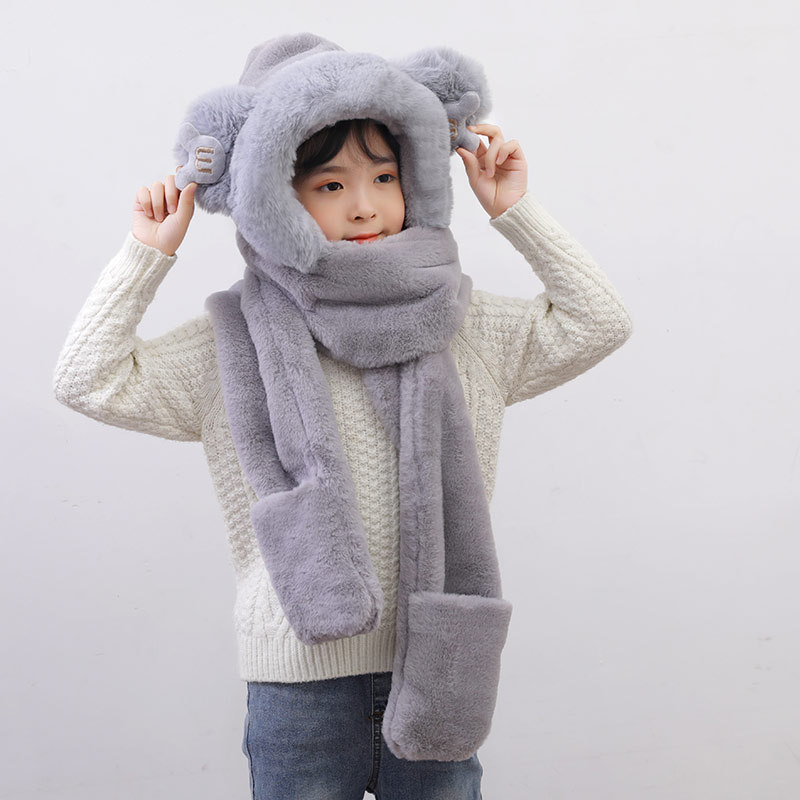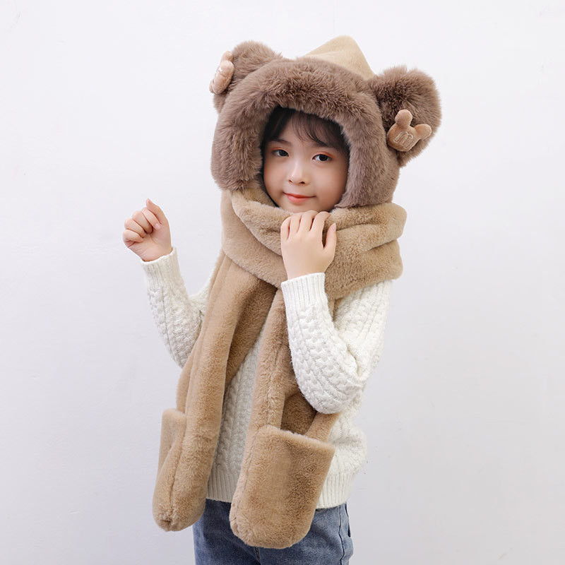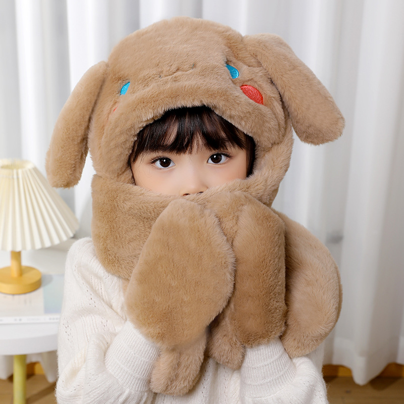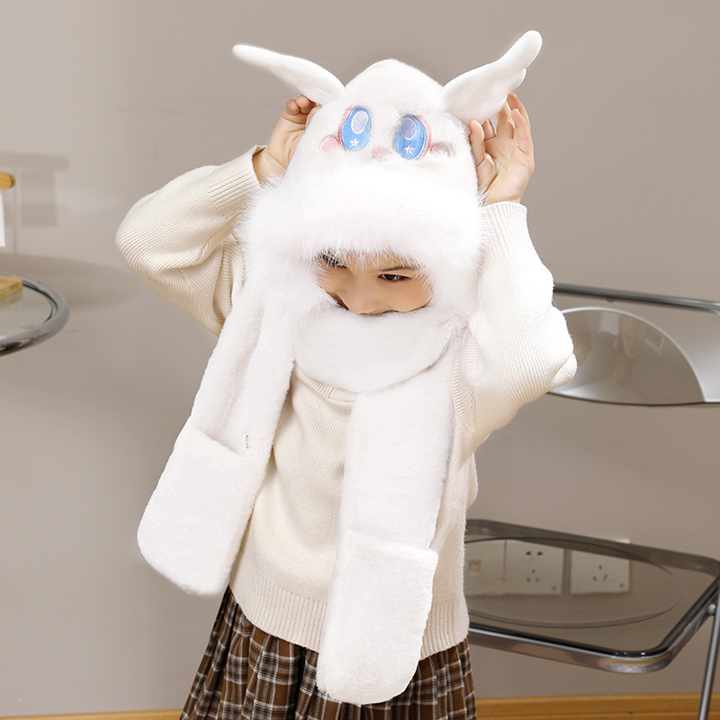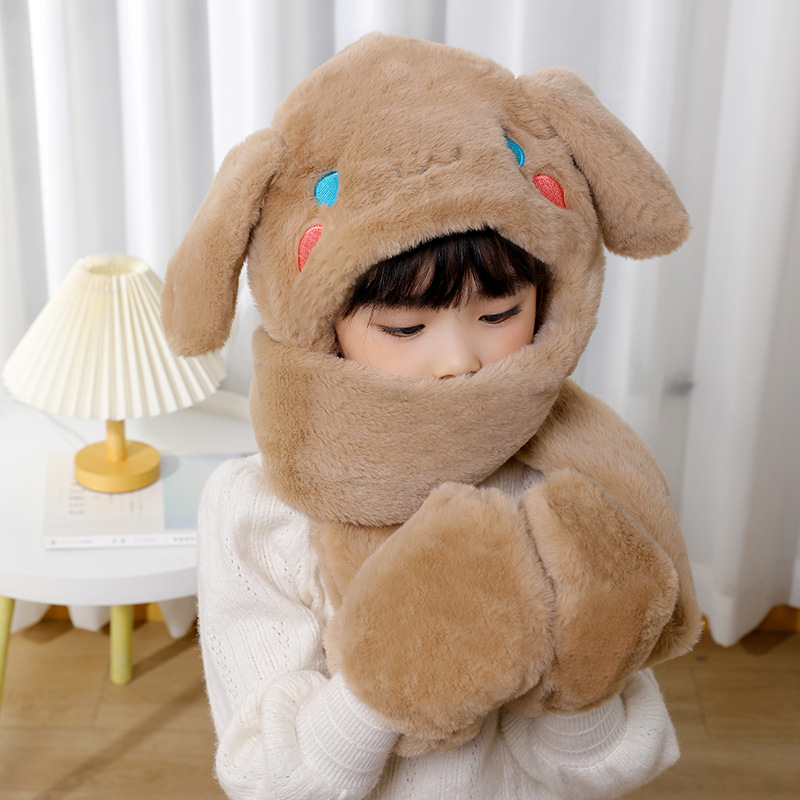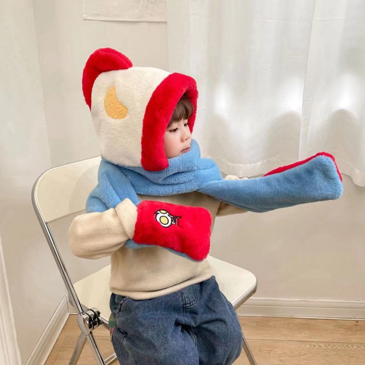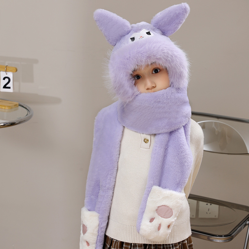加绒加厚兔耳朵帽子儿童秋冬保暖围脖手套三件套女童围巾一体帽