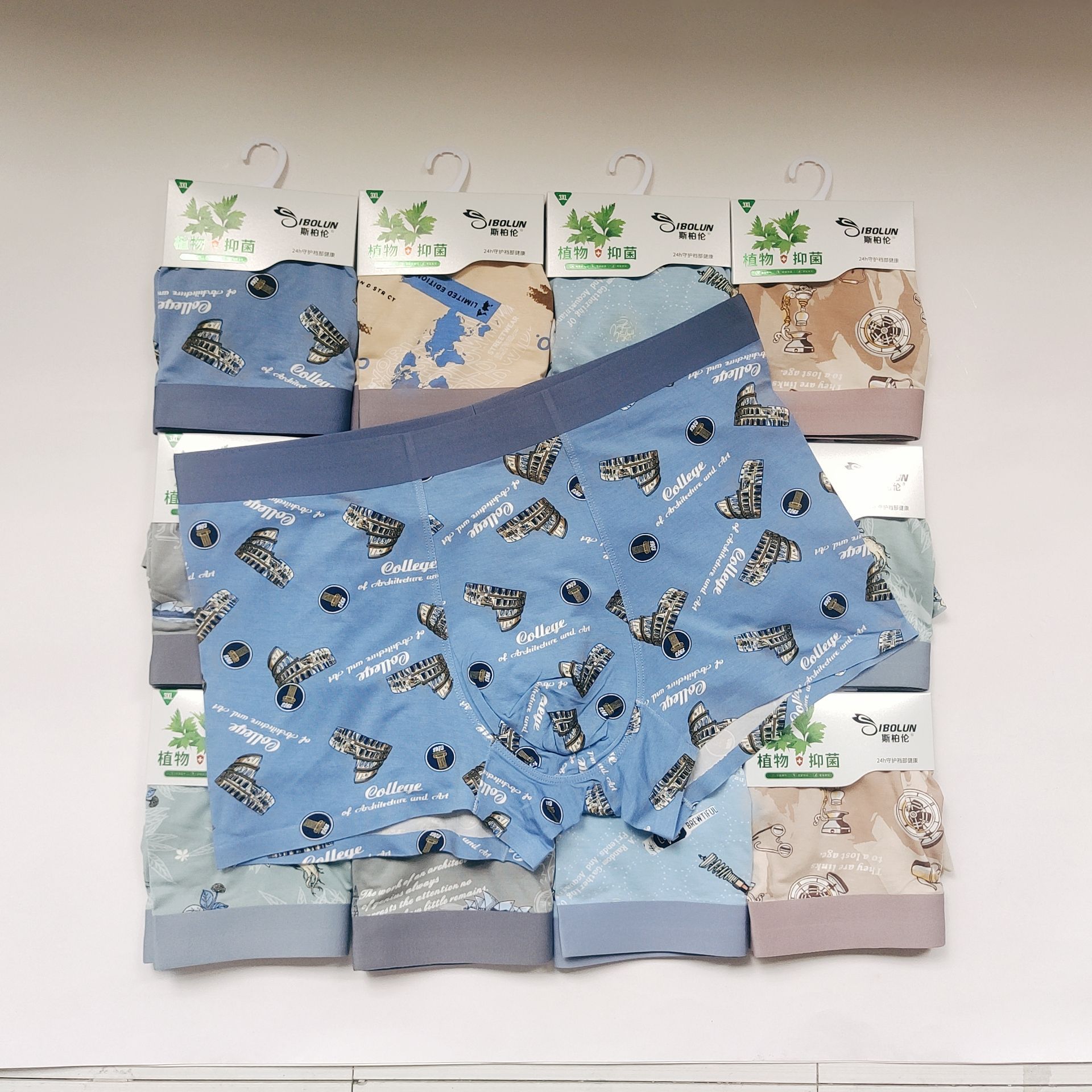 2024新款男士无痕莫代尔印花卡裤男士平角裤批发