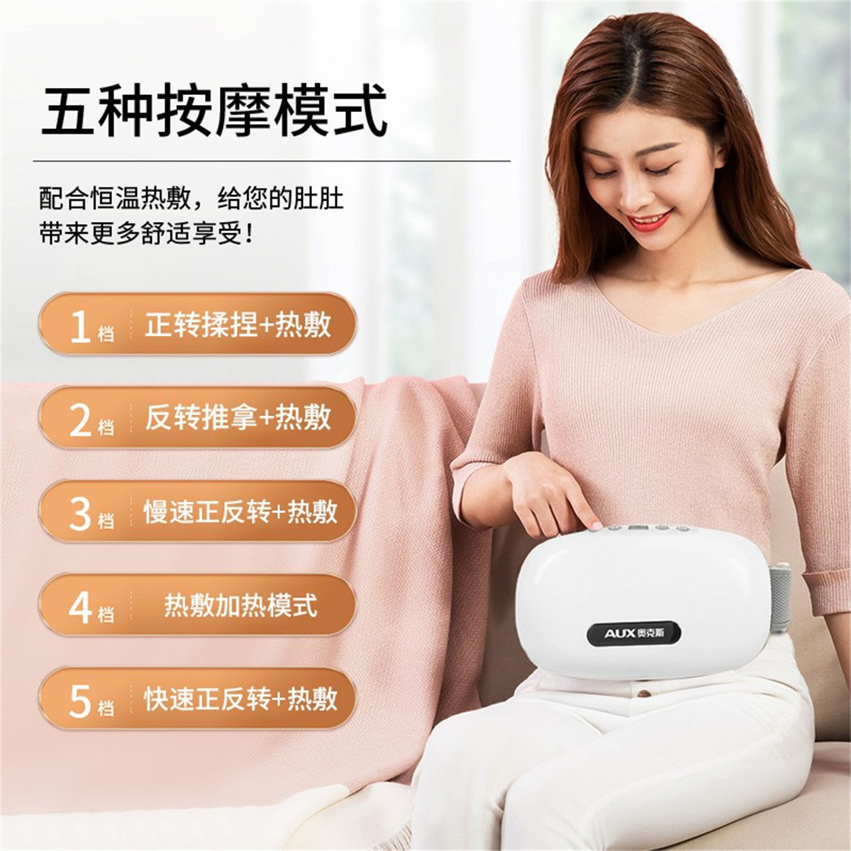 奥克斯腰部腹部按摩器揉肚子磁石全自动热敷揉腹仪新年礼品批发