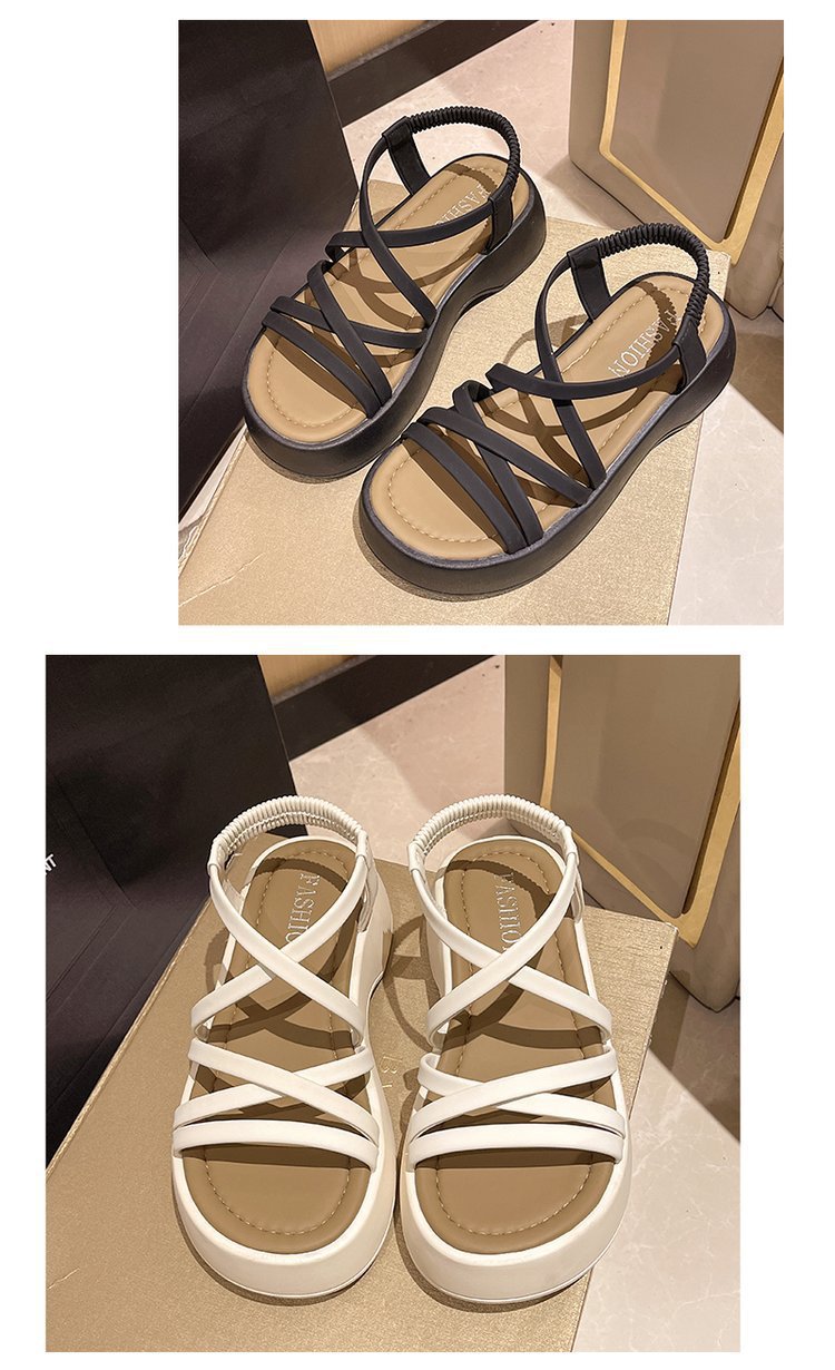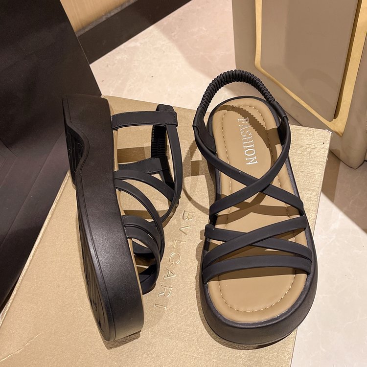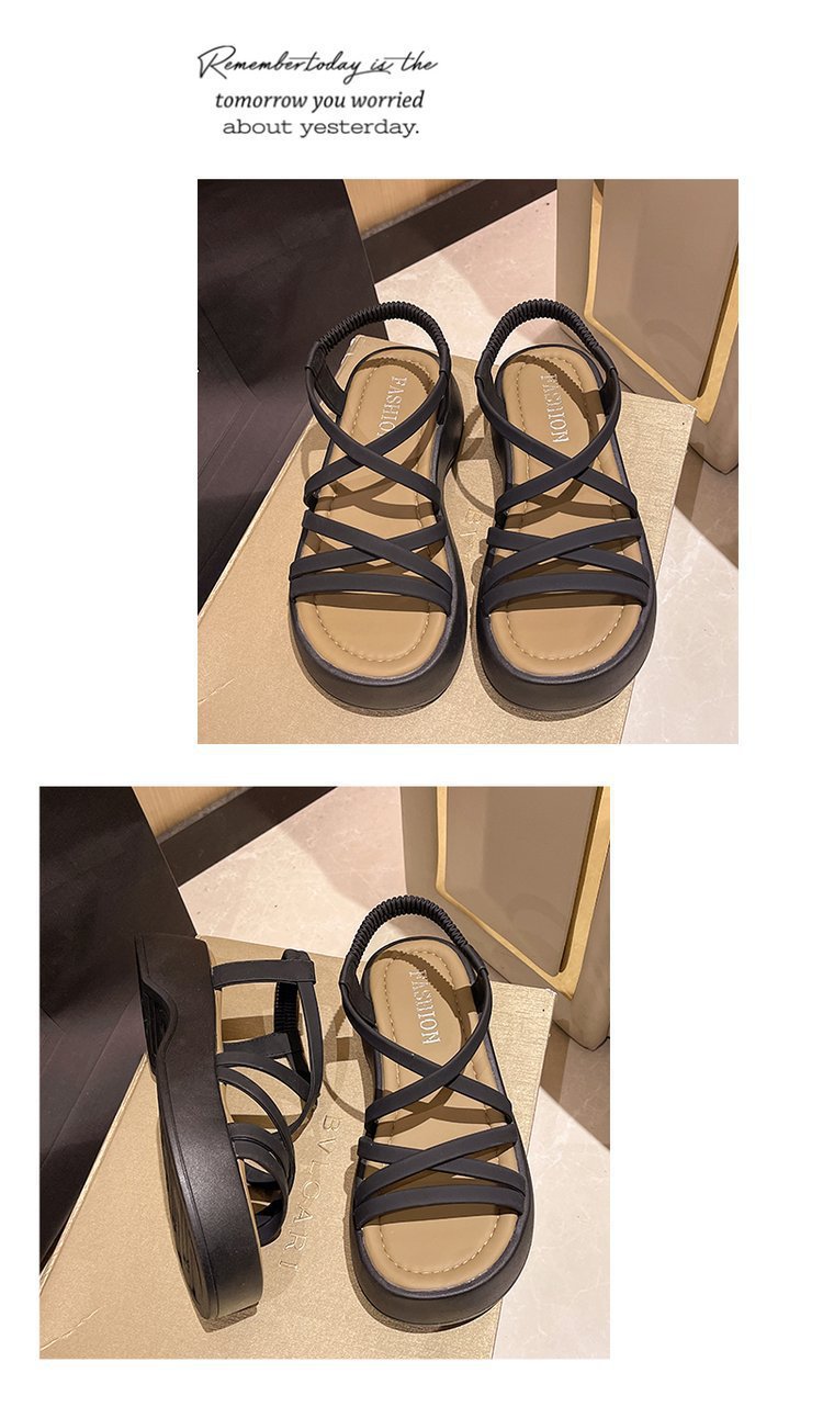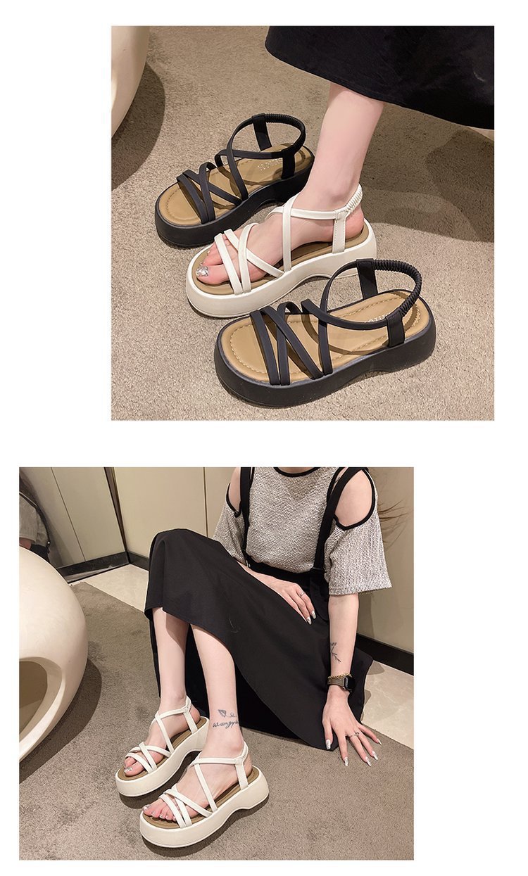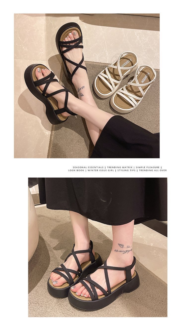 厚底松糕凉鞋女2024年夏季新款韩版小个子交叉细带高跟罗马鞋