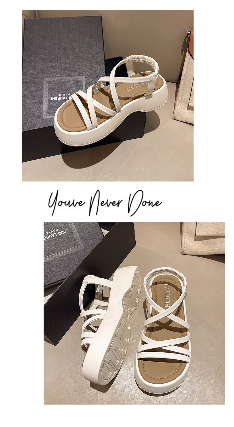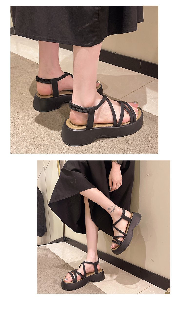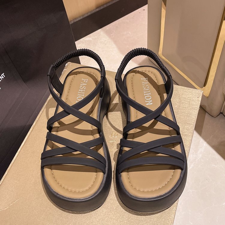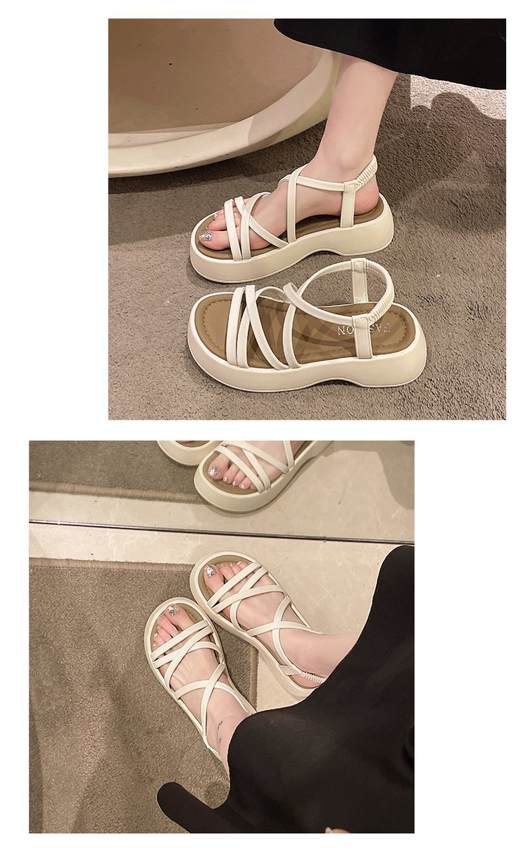 厚底松糕凉鞋女2024年夏季新款韩版小个子交叉细带高跟罗马鞋