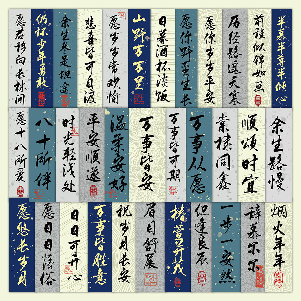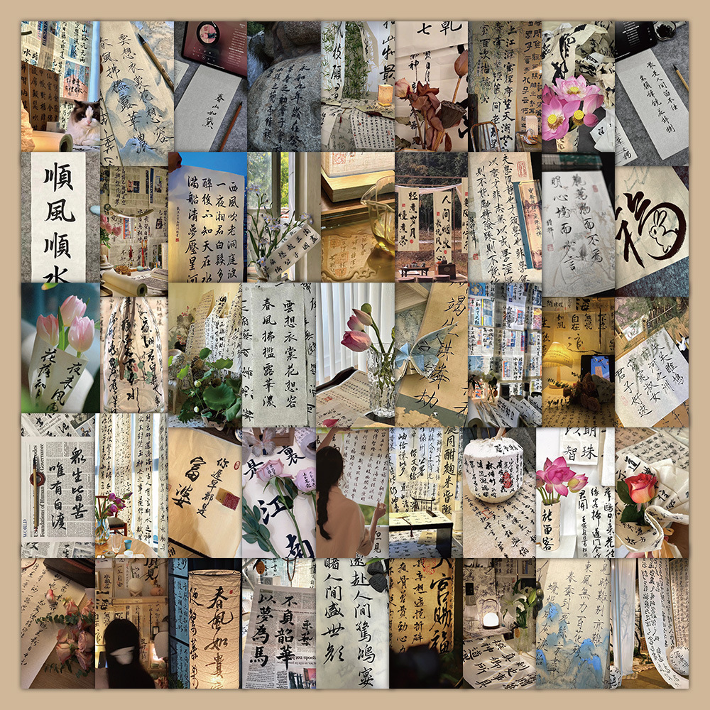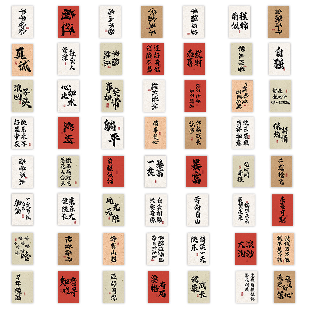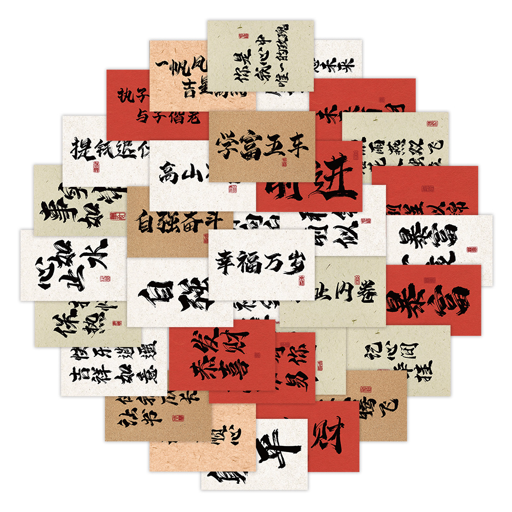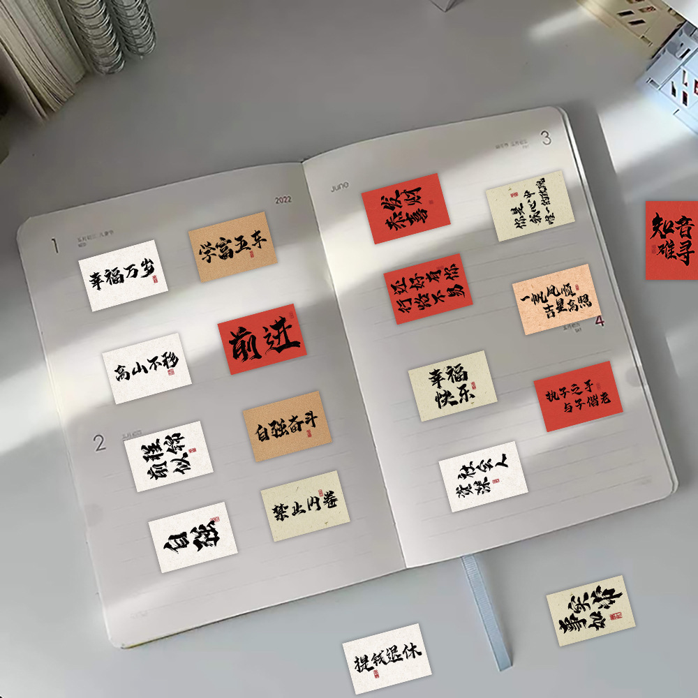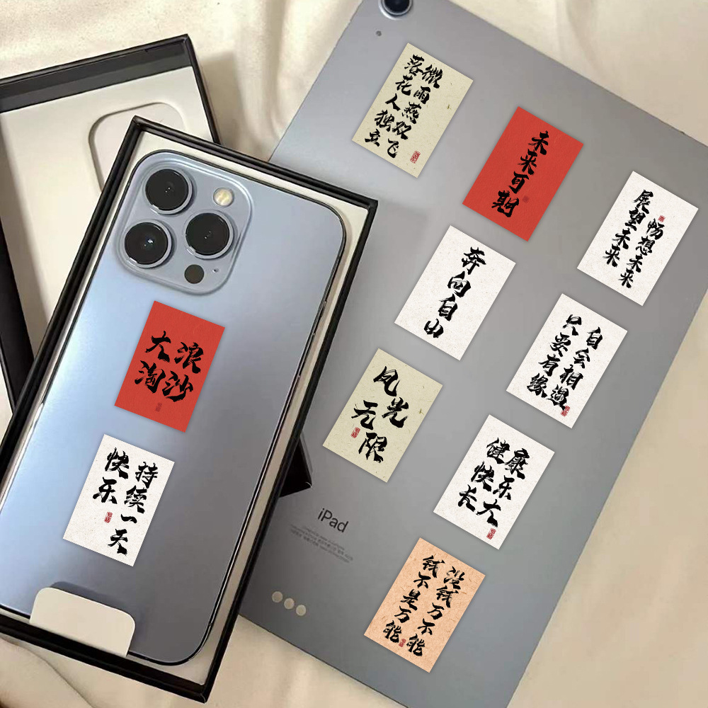 63张古风书法文字贴纸 国风励志小纸条高颜值DIY手机平板小贴画
