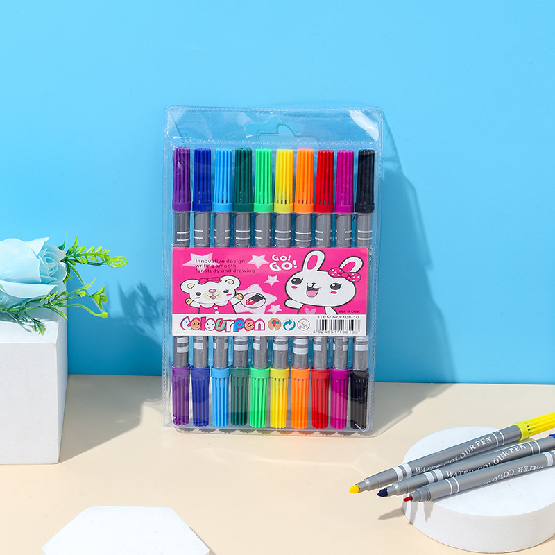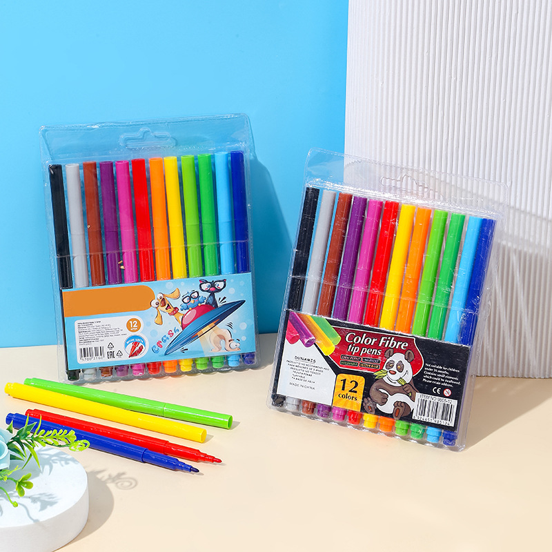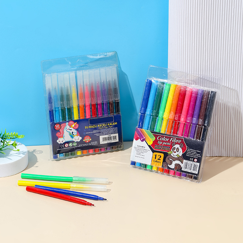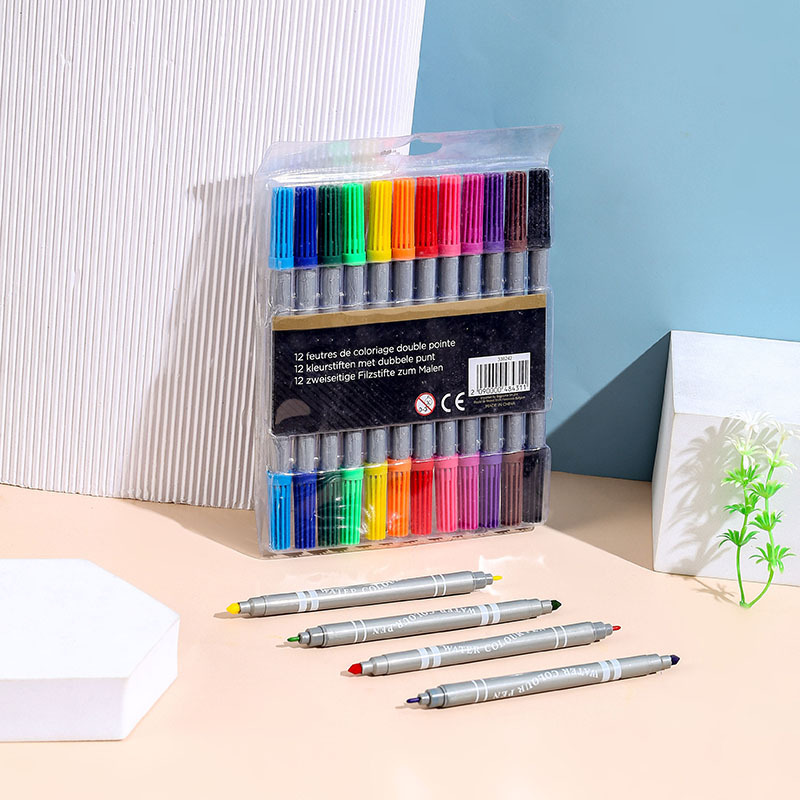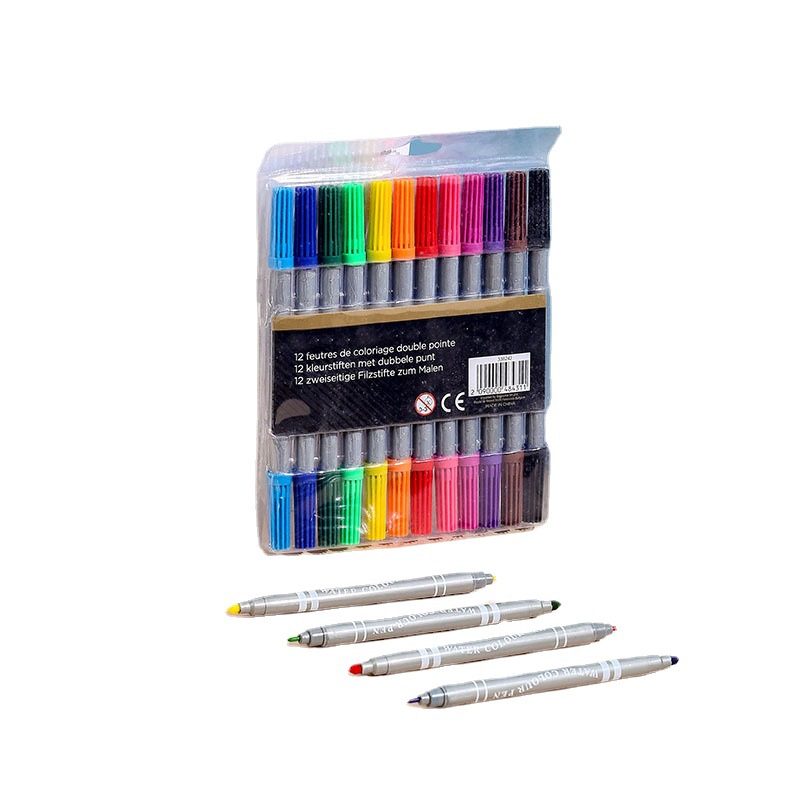 1871水彩笔袋装12色双头彩色笔儿童画笔可洗学生美术用品厂家批发