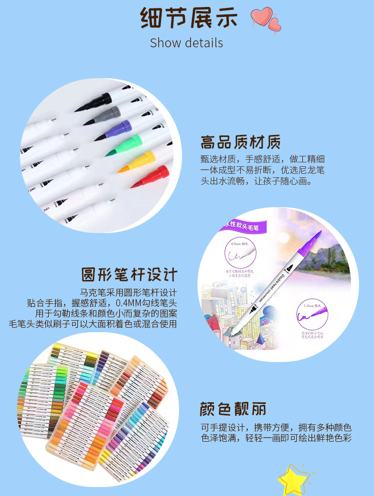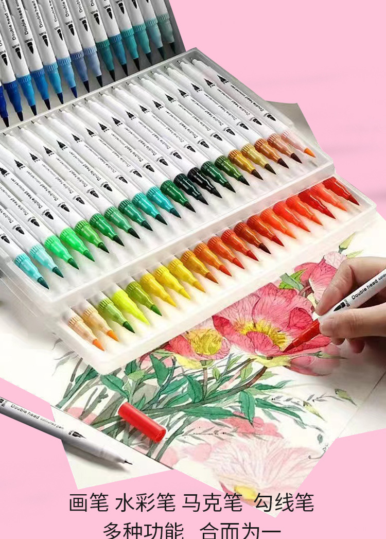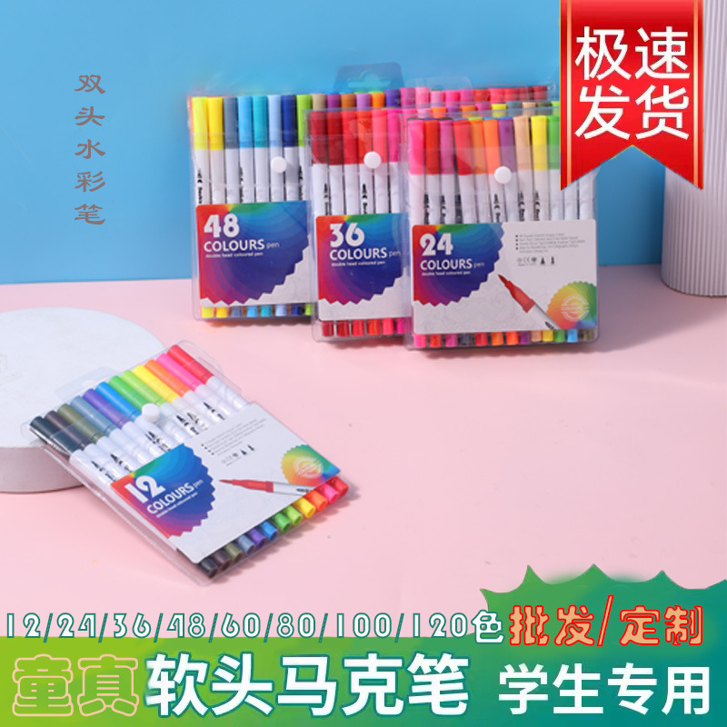 软头双头水彩笔12-120色套装彩色勾线笔签字笔学生美术绘画描线笔