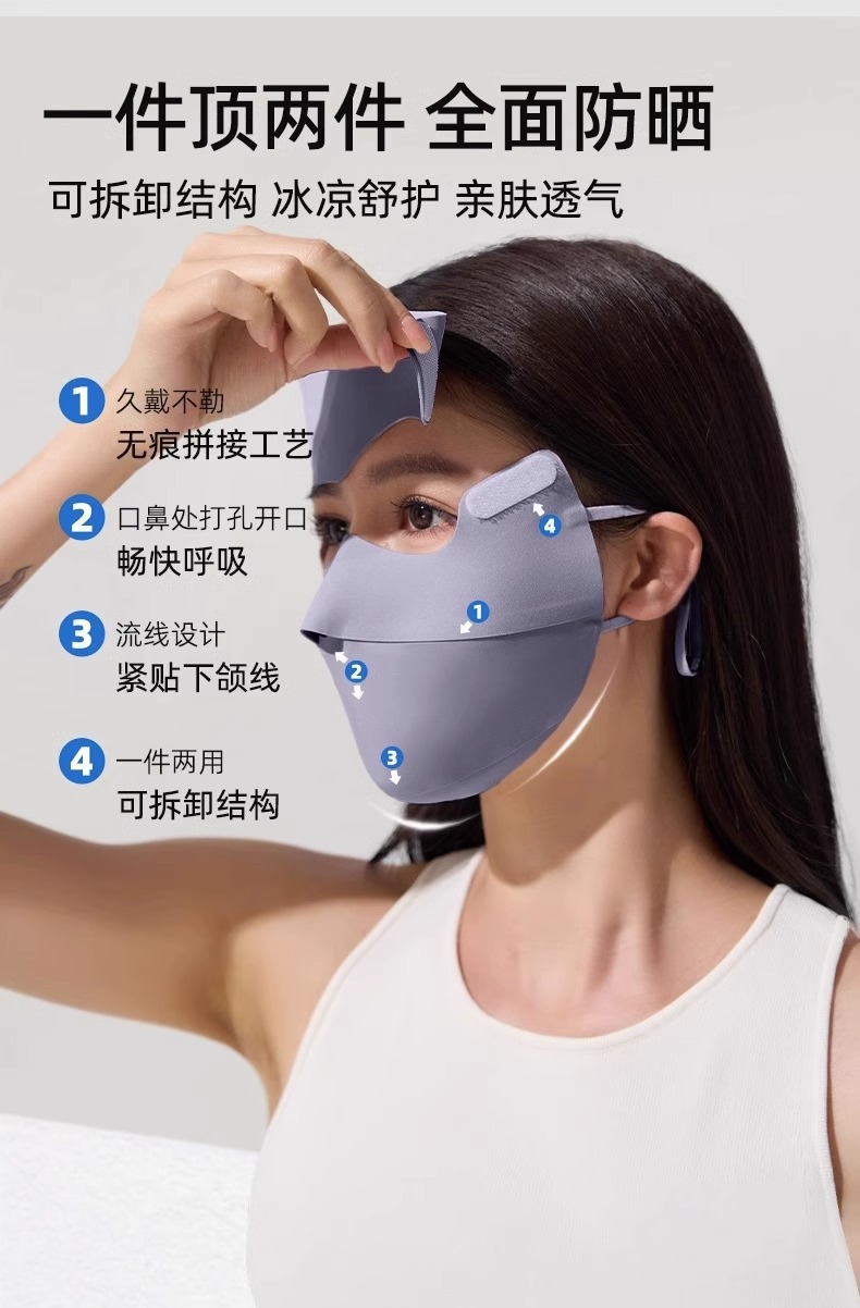 脸基尼遮全脸防晒面罩女夏季透气薄款冰丝遮阳口罩防紫外线护眼角