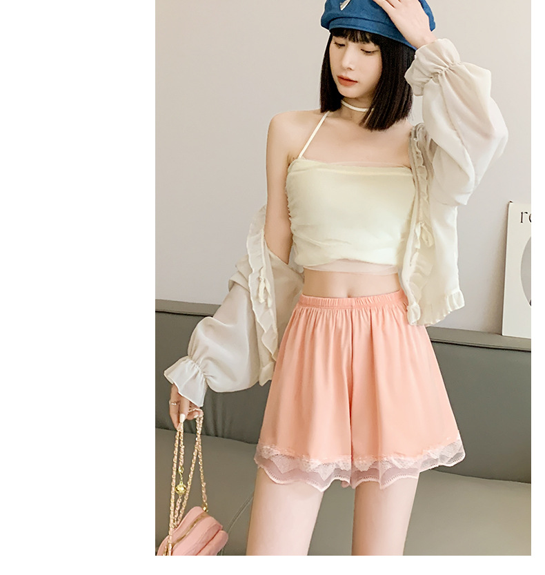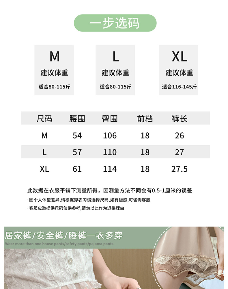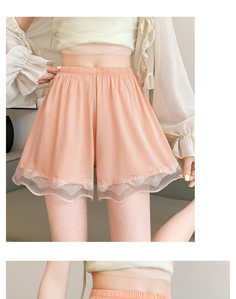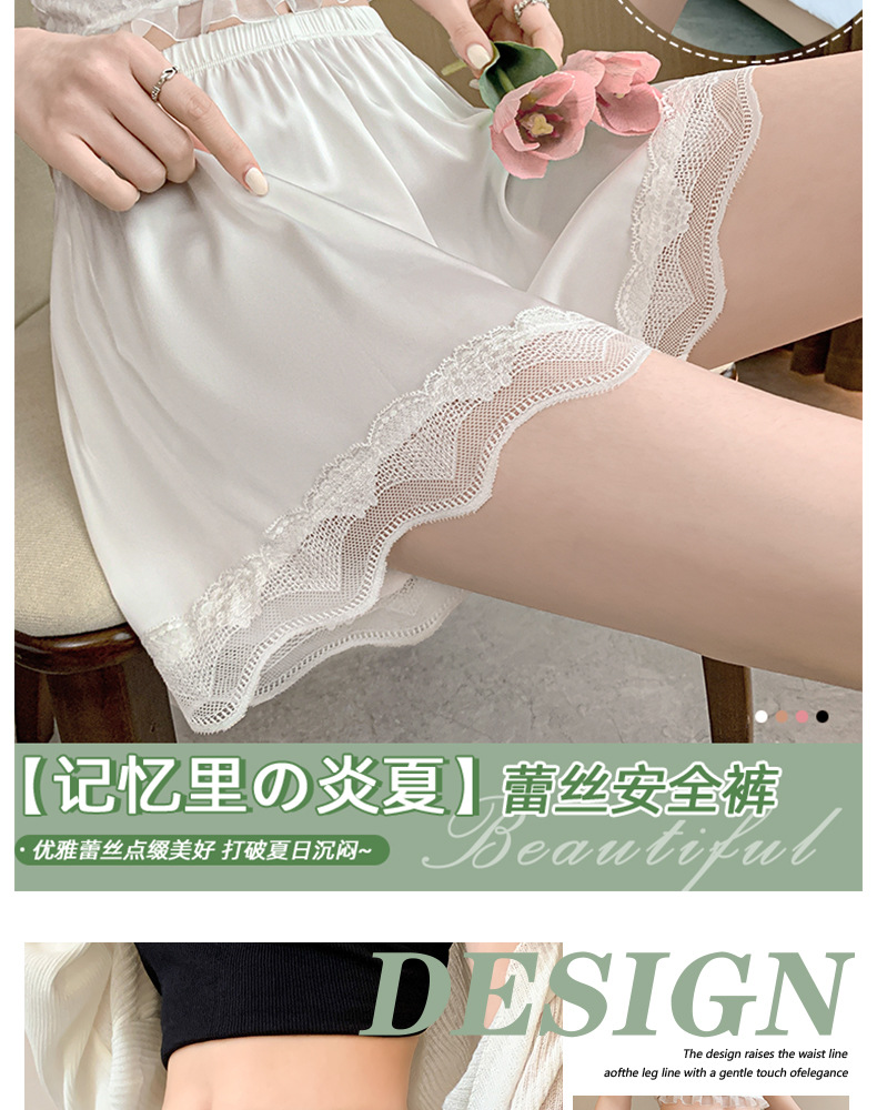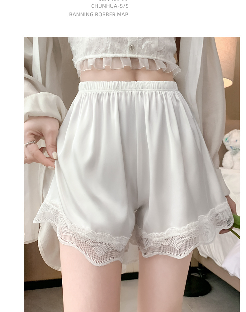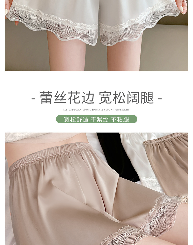 安全裤女夏季薄款绸缎蕾丝波浪花边宽松jk不卷边外穿防走光打底裤