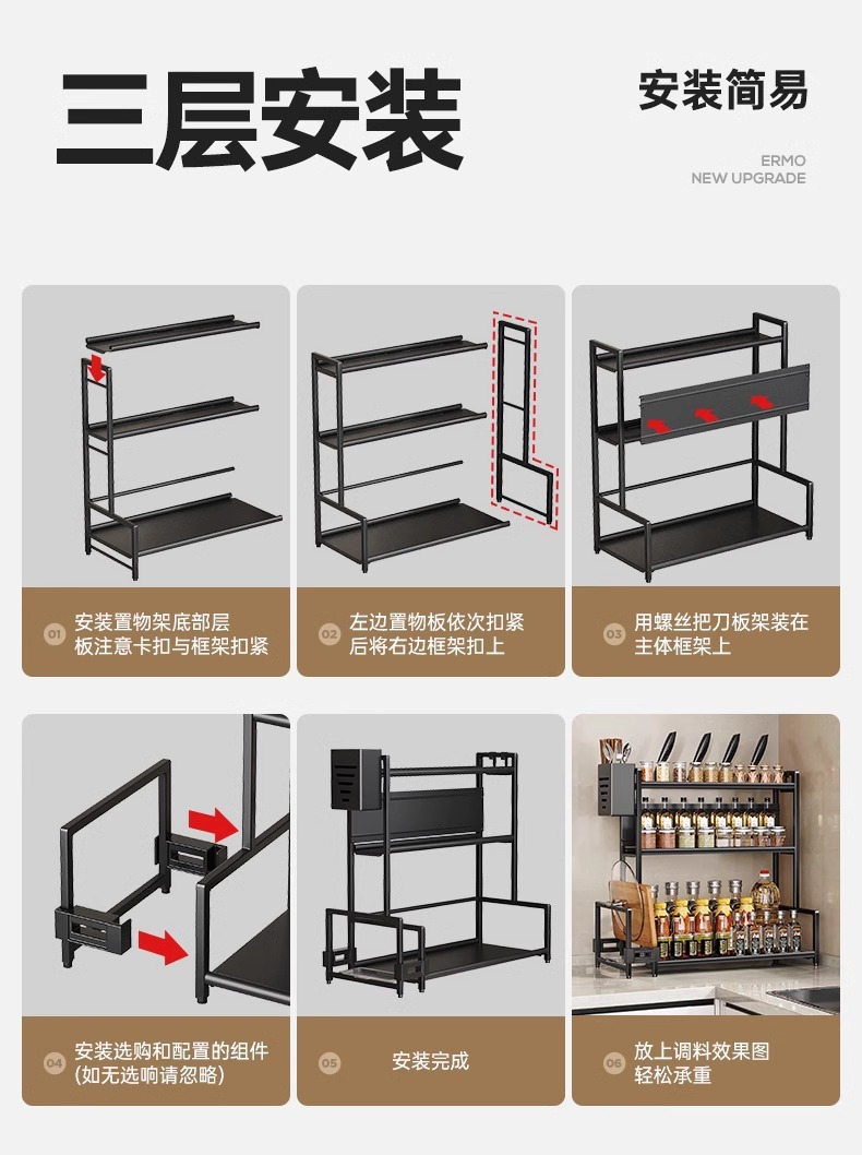 厨房调料置物架筷子刀架台面多功能调味品厨具用品收纳架多层架子