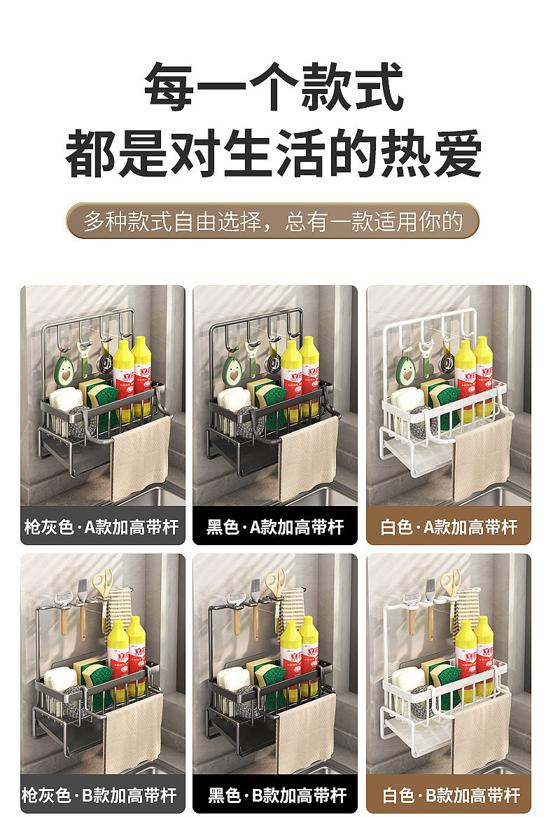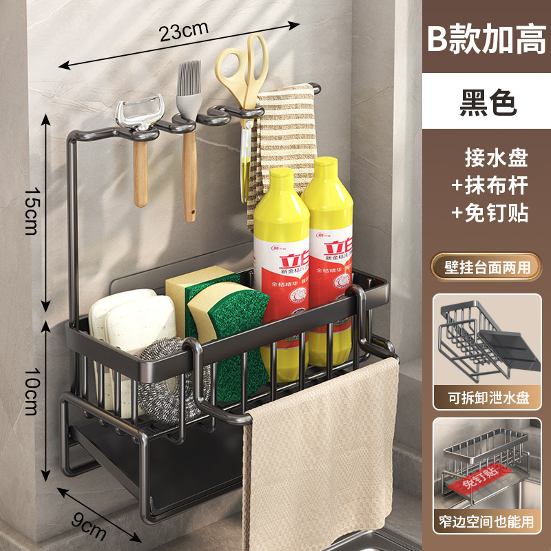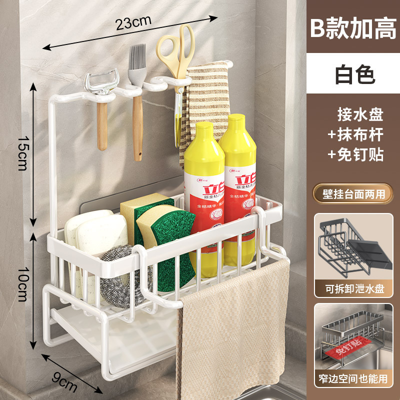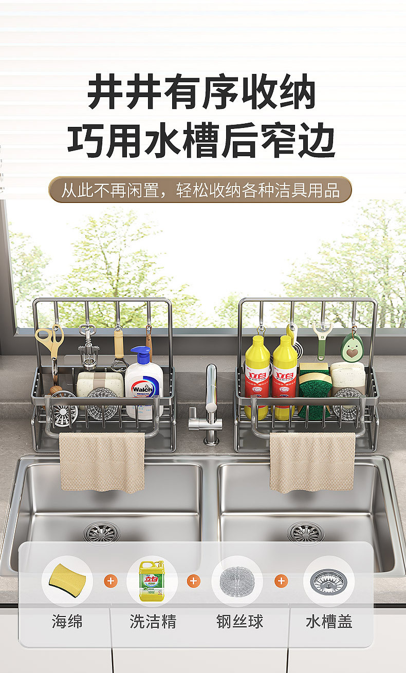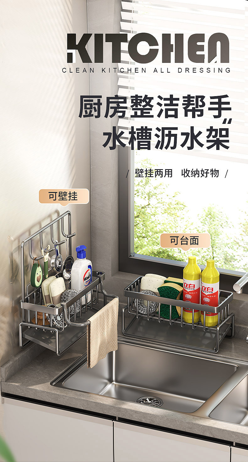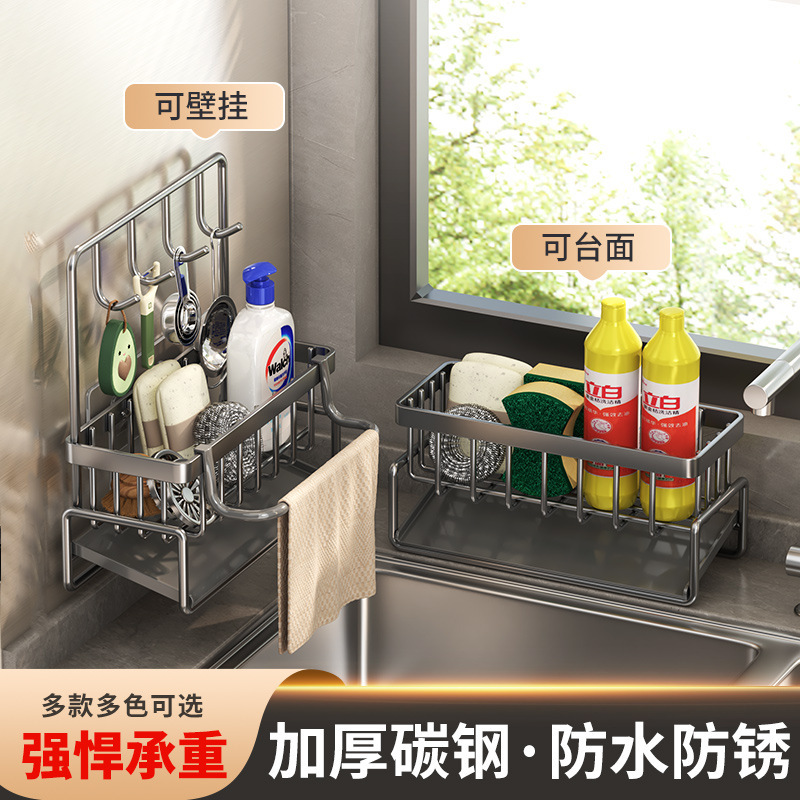 免打孔壁挂收纳架洗碗水槽置物架子台面多功能家用海绵沥水篮神器