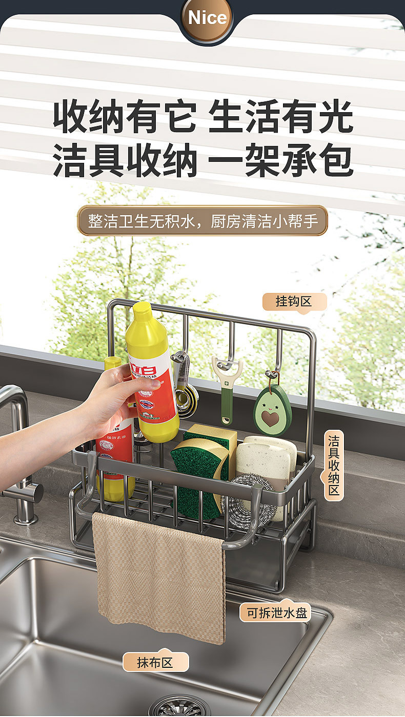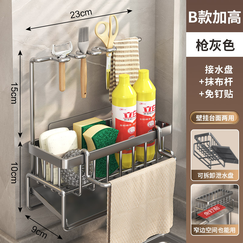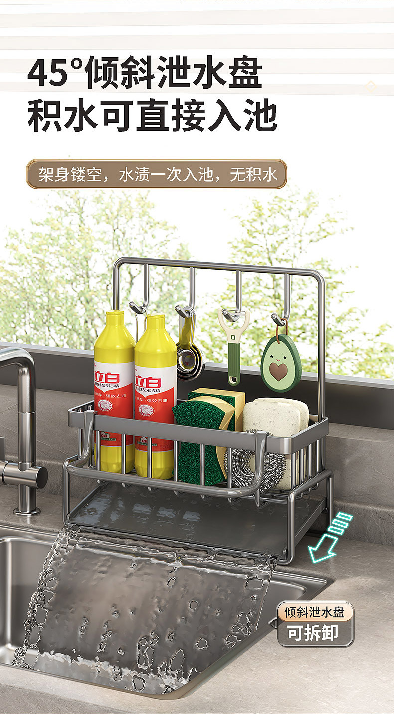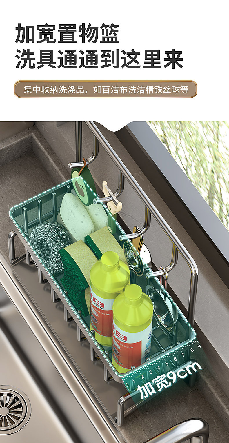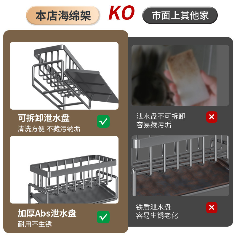 免打孔壁挂收纳架洗碗水槽置物架子台面多功能家用海绵沥水篮神器