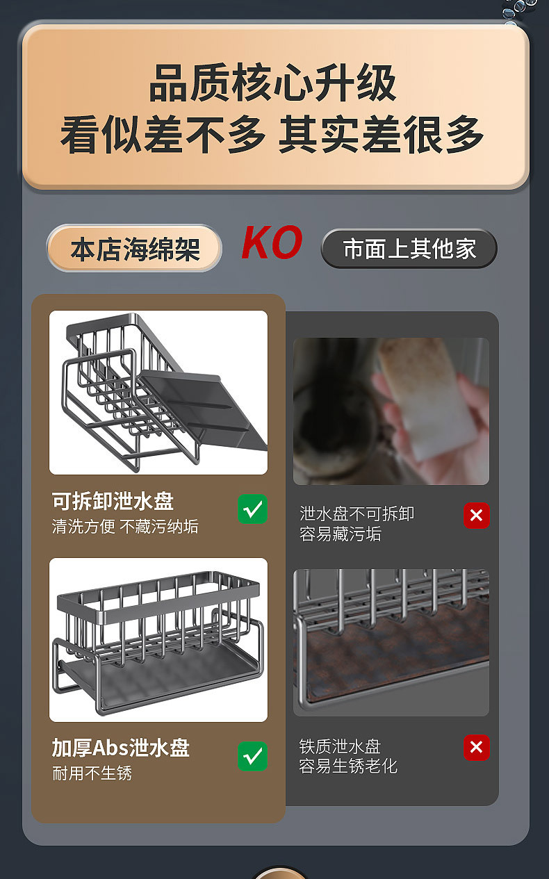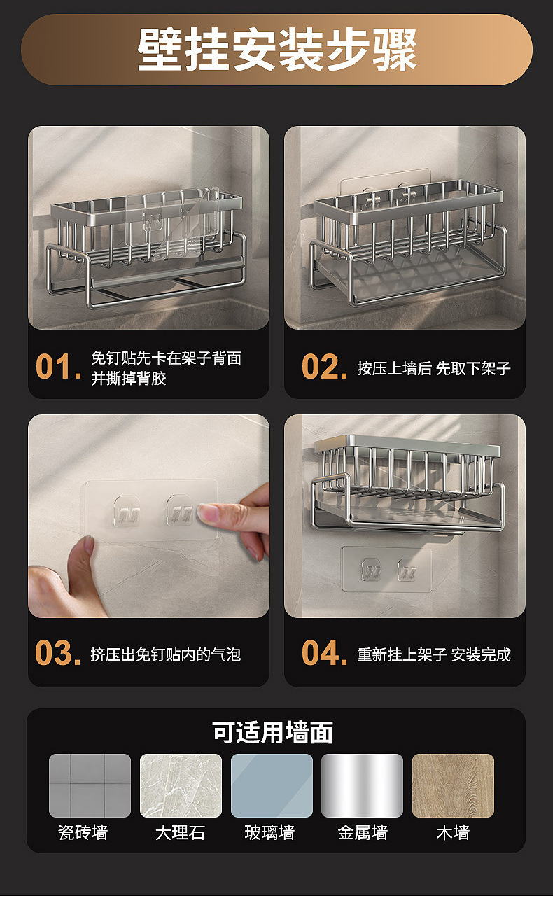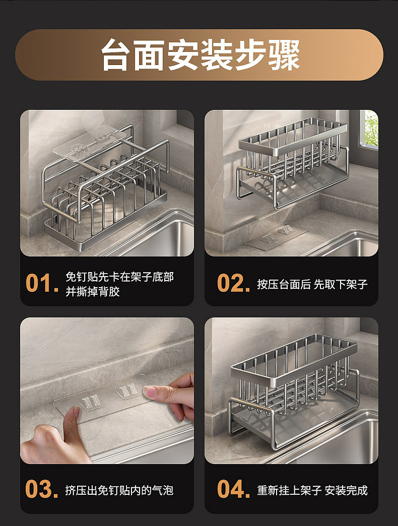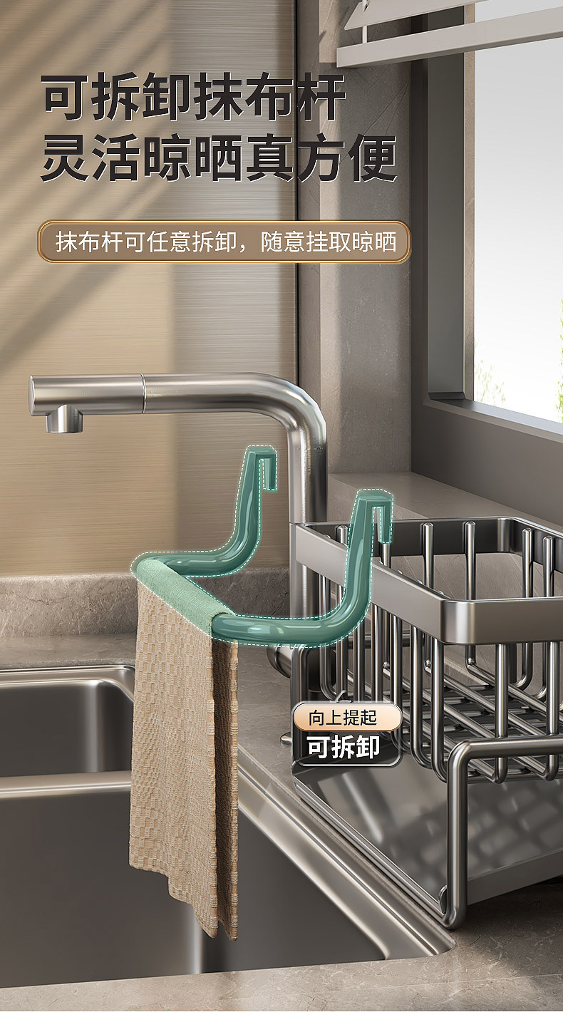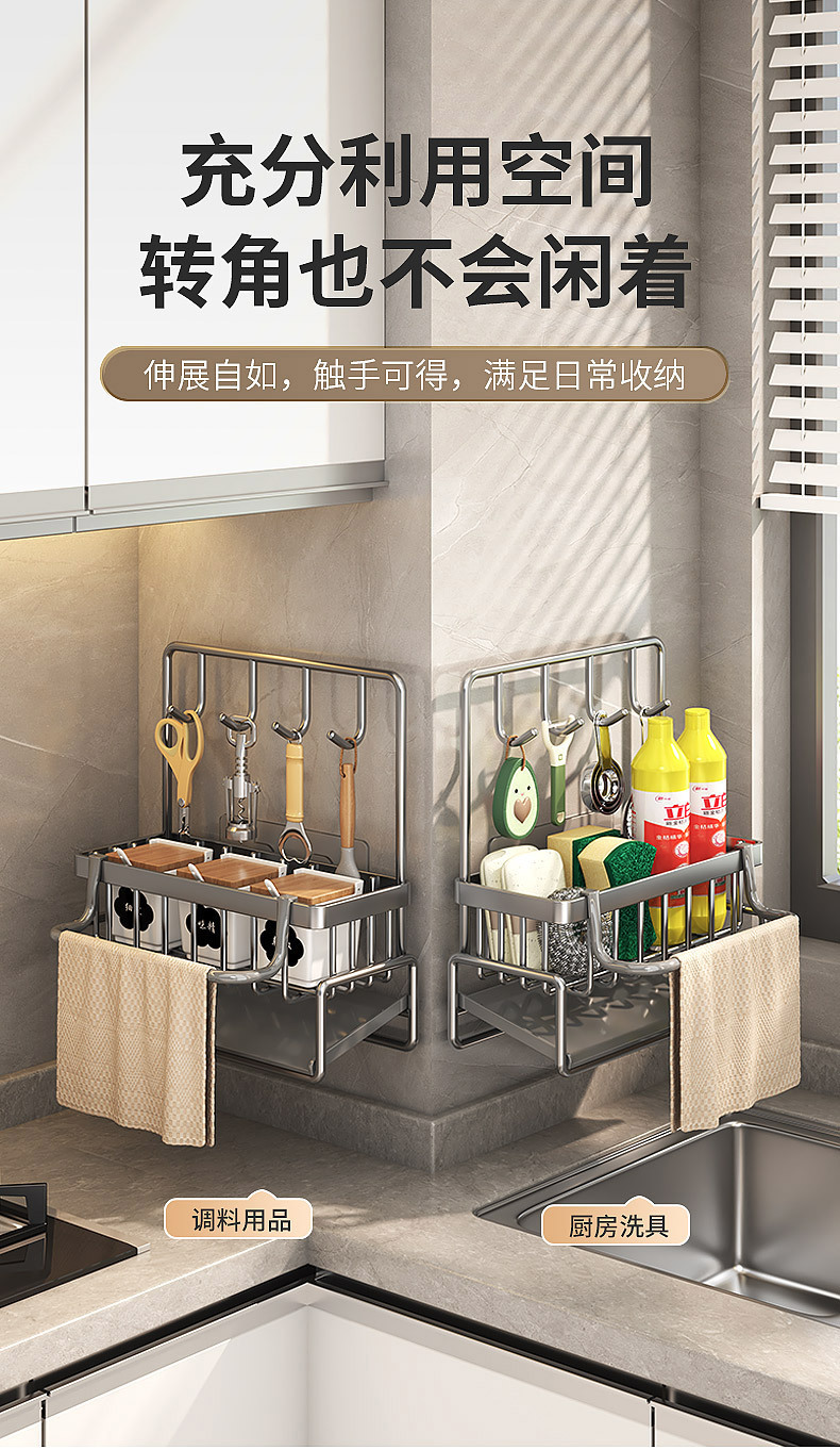 免打孔壁挂收纳架洗碗水槽置物架子台面多功能家用海绵沥水篮神器