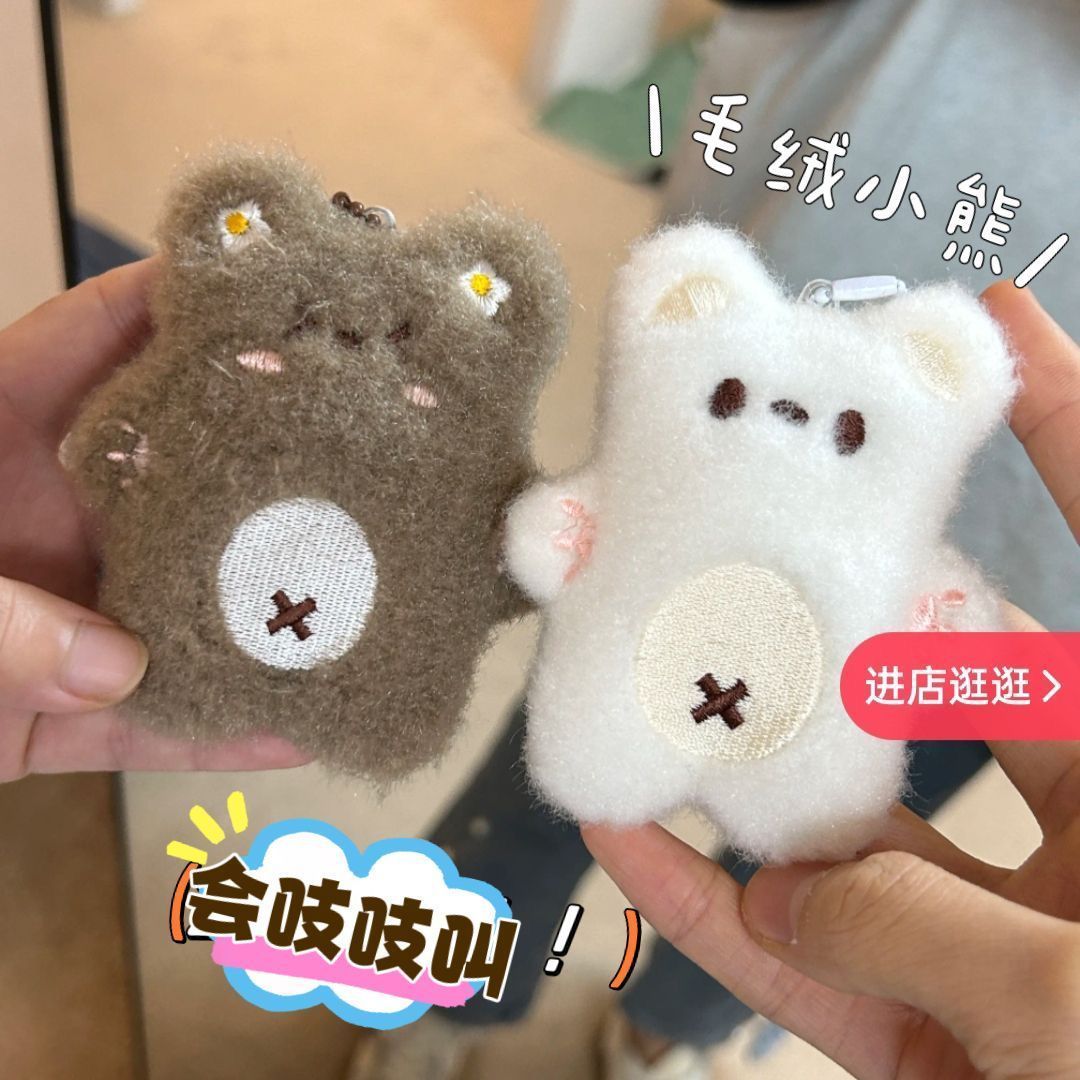 新款吱吱叫小熊钥匙扣可爱情侣挂件会吱吱叫的玩偶挂链闺蜜礼物