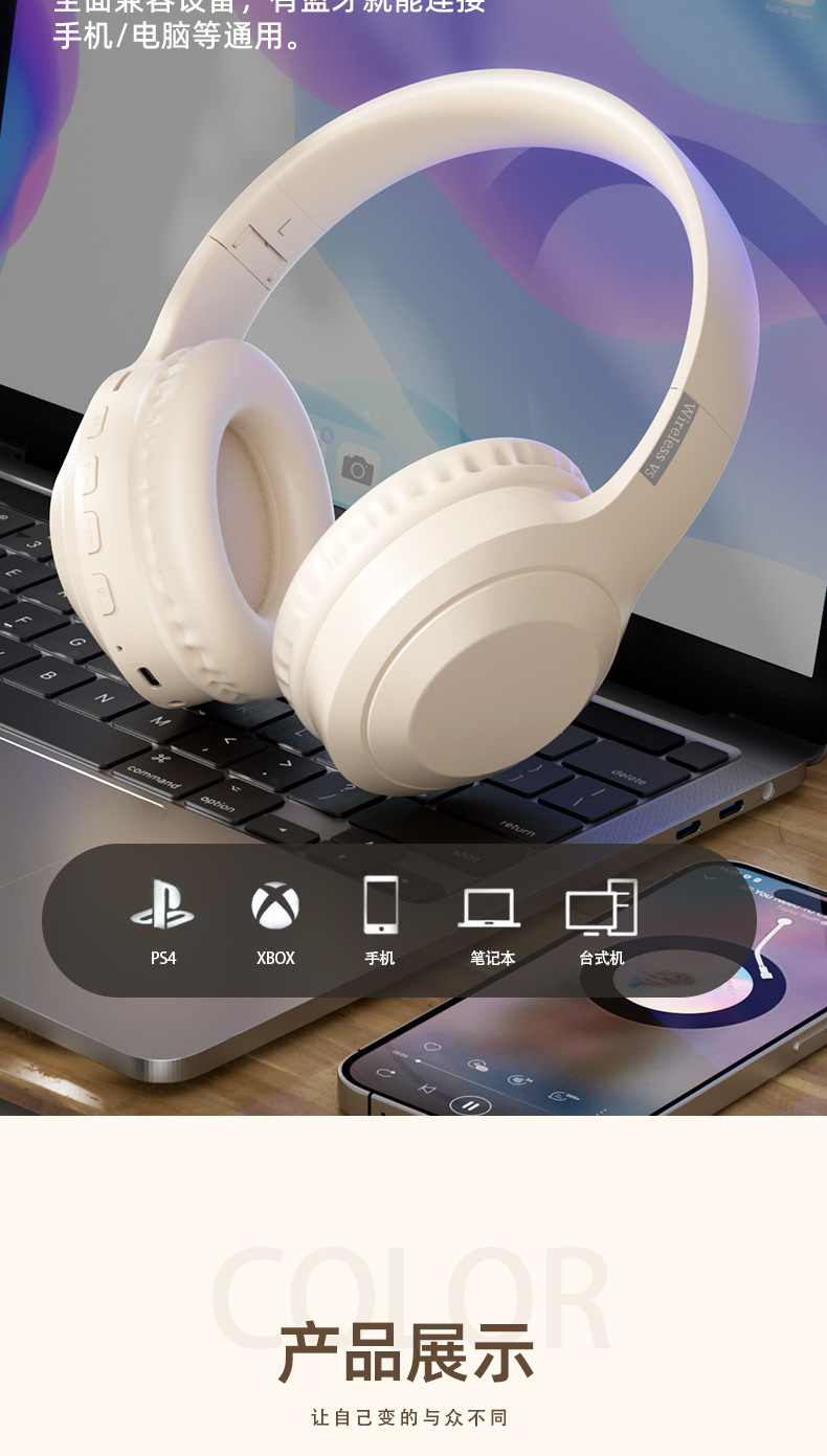 新款跨境V5头戴式运动型无线蓝牙耳机爆款游戏蓝牙耳机批发