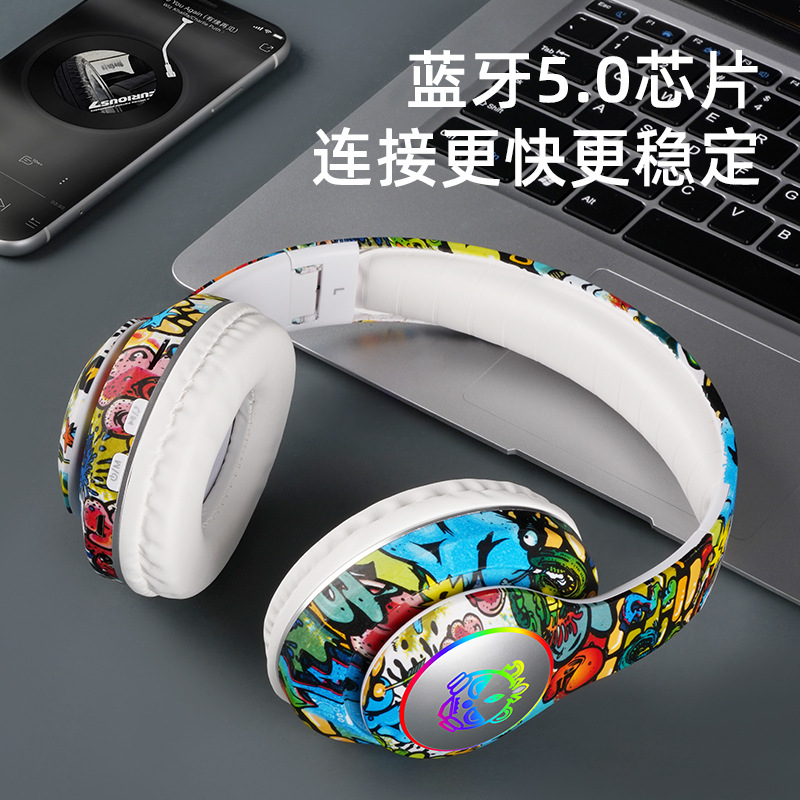 跨境新款头LX-8686戴式蓝牙耳机LED发光游戏无线插卡蓝牙耳机涂鸦
