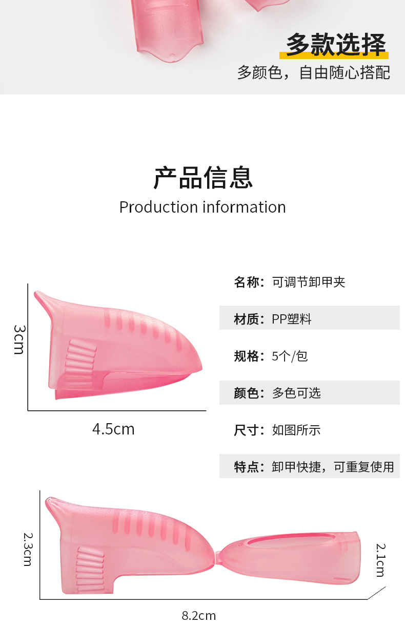 5PCS卸甲夹新款美甲卸甲套露指带卡位可调节塑料手指卸甲夹工具