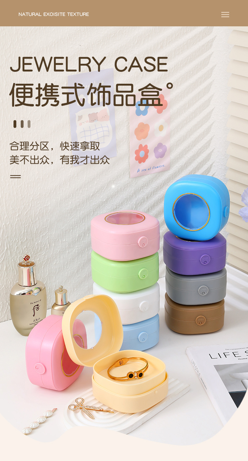 新款便携首饰收纳盒耳钉戒指项链饰品盒子简约小巧首饰盒跨境批发