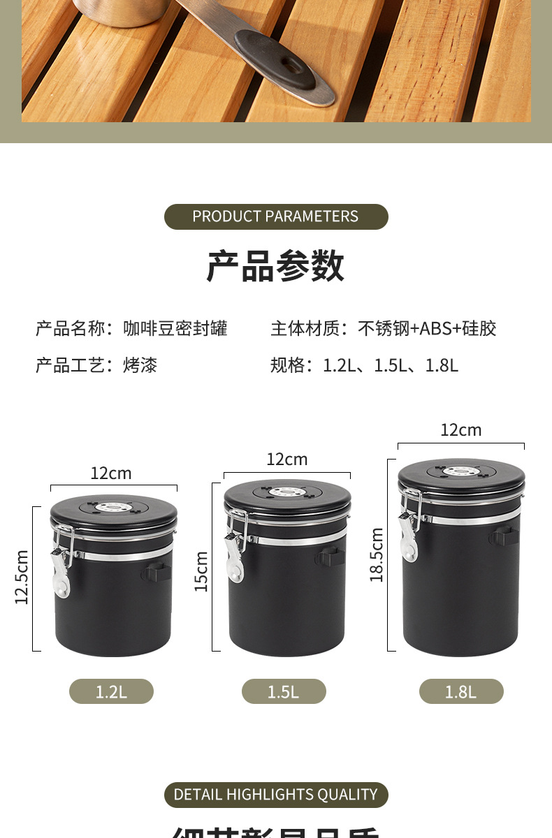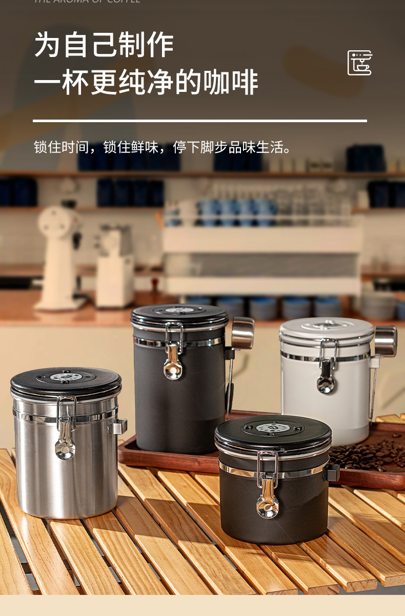 304不锈钢咖啡粉密封罐咖啡保存罐圆形储储存罐猫粮狗粮物桶