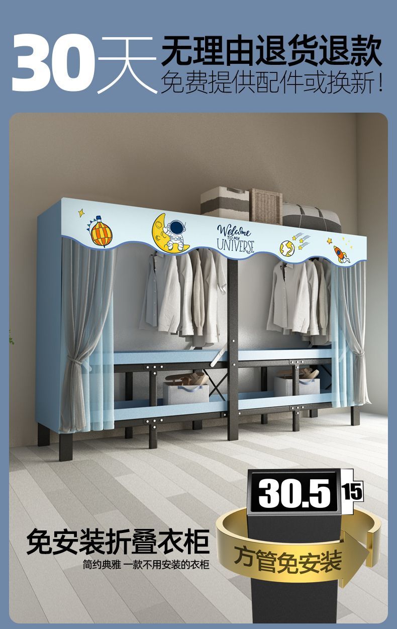 简易衣柜免安装折叠布衣柜家用收纳卧室衣橱出租房用钢架结实耐用