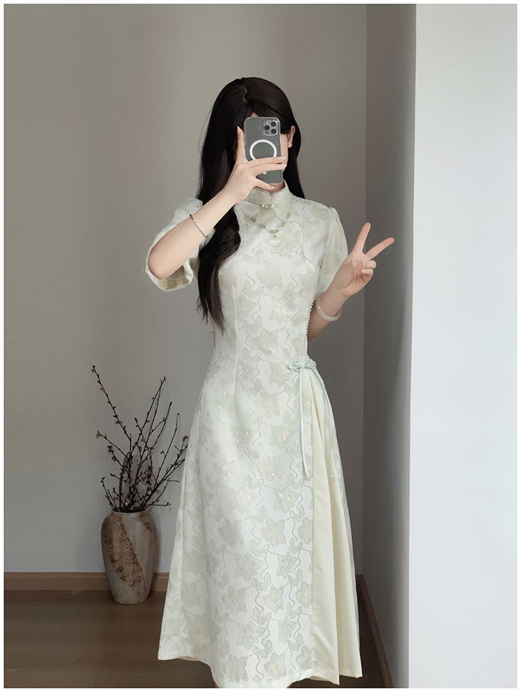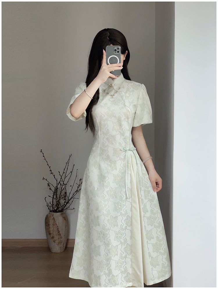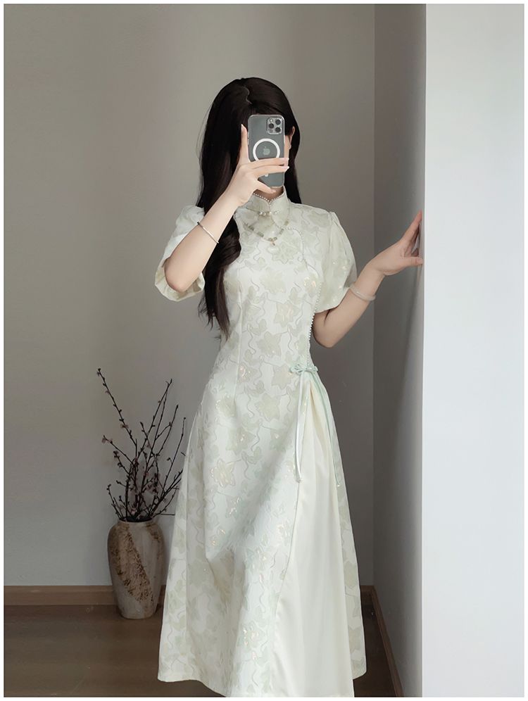 旗袍连衣裙新中式改良版2024春夏新款民国风气质少女日常可穿长裙