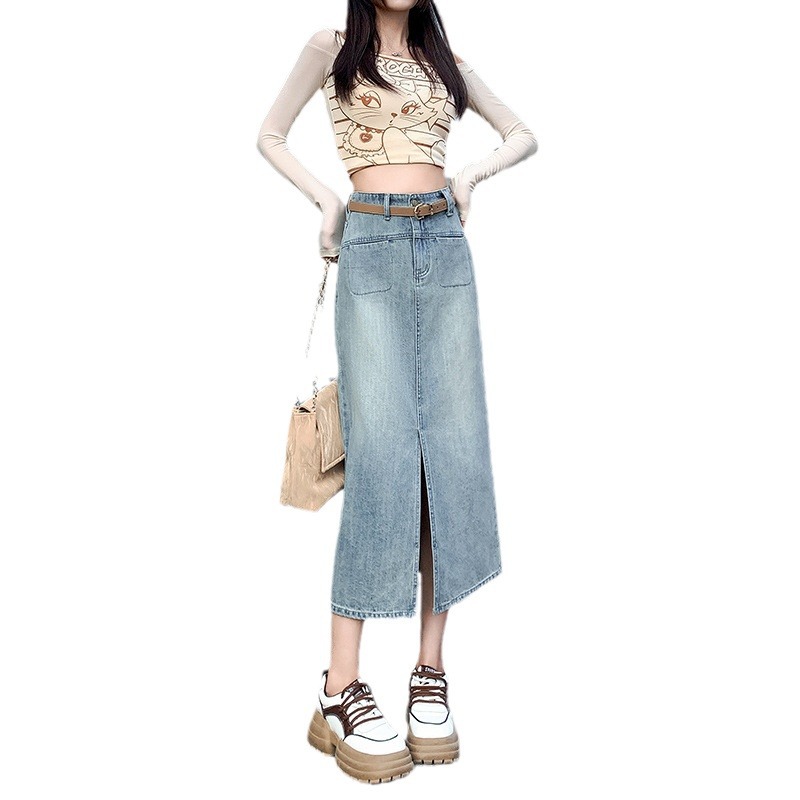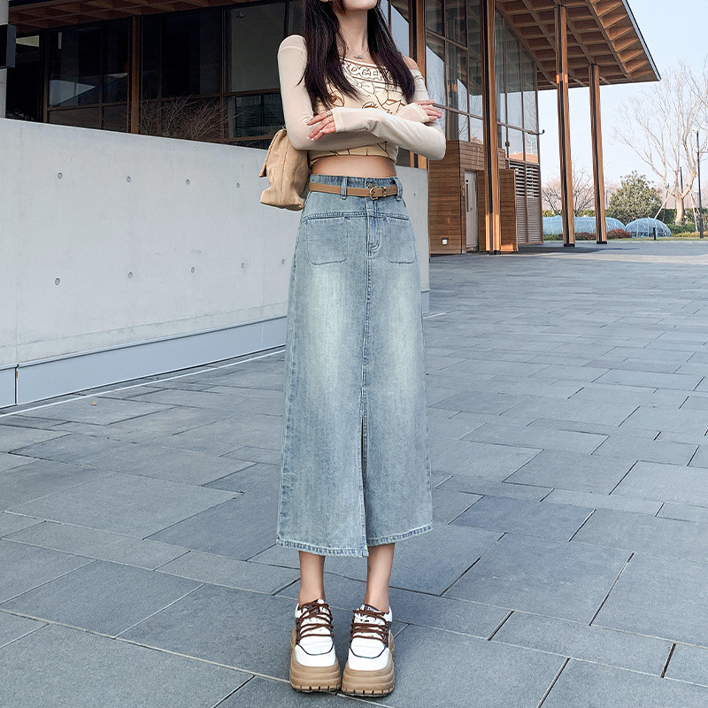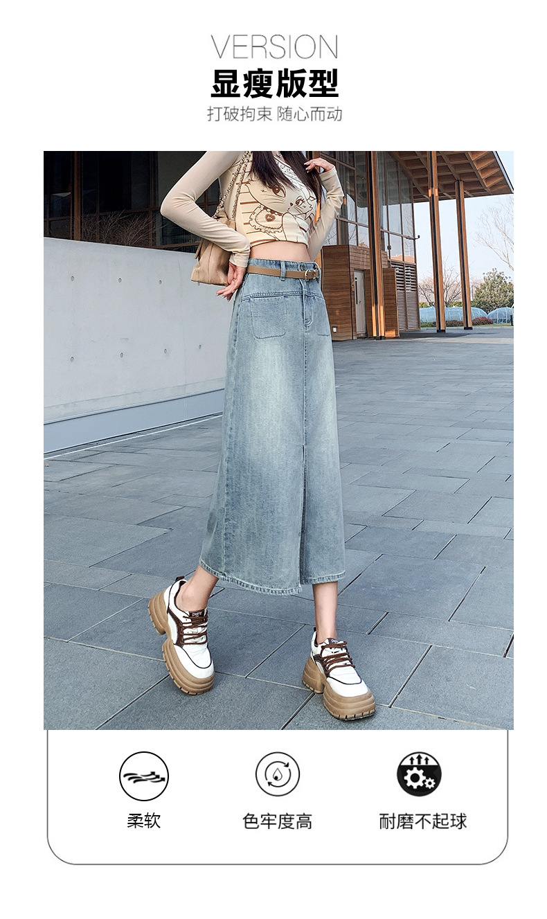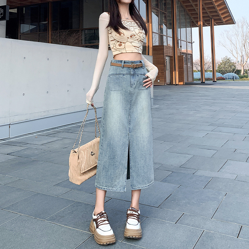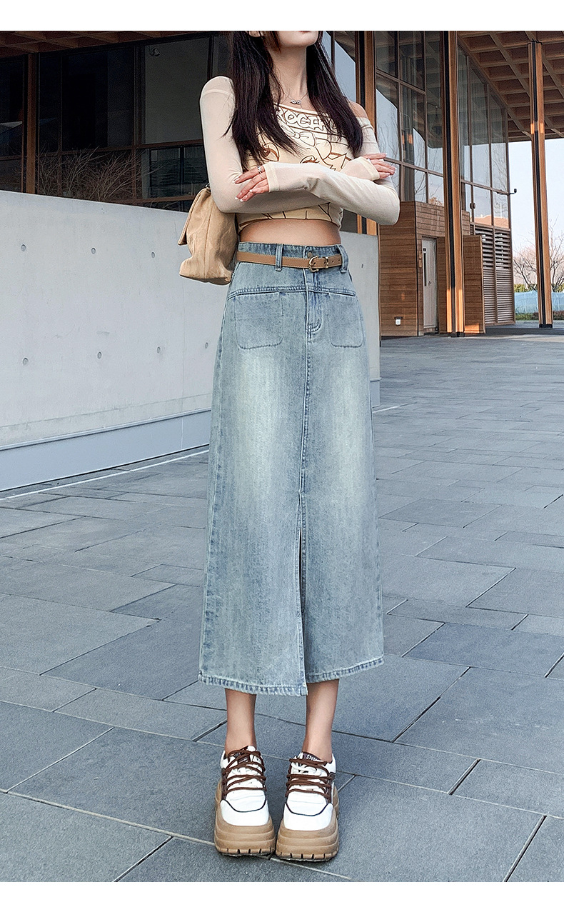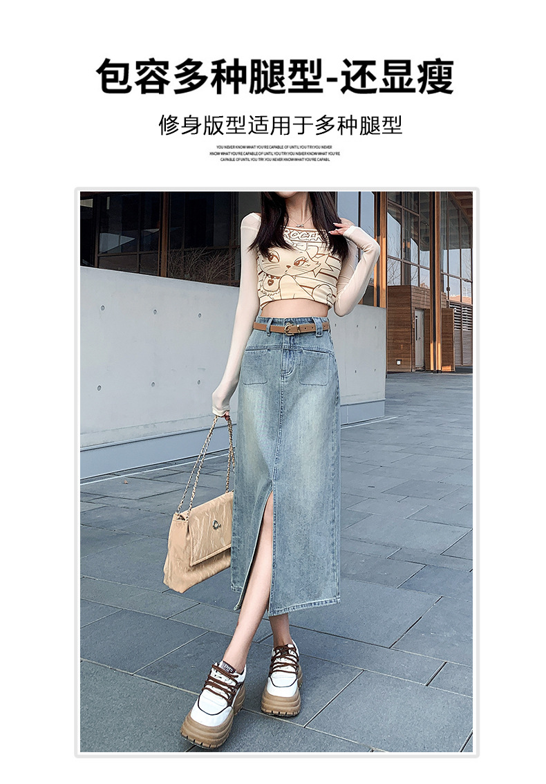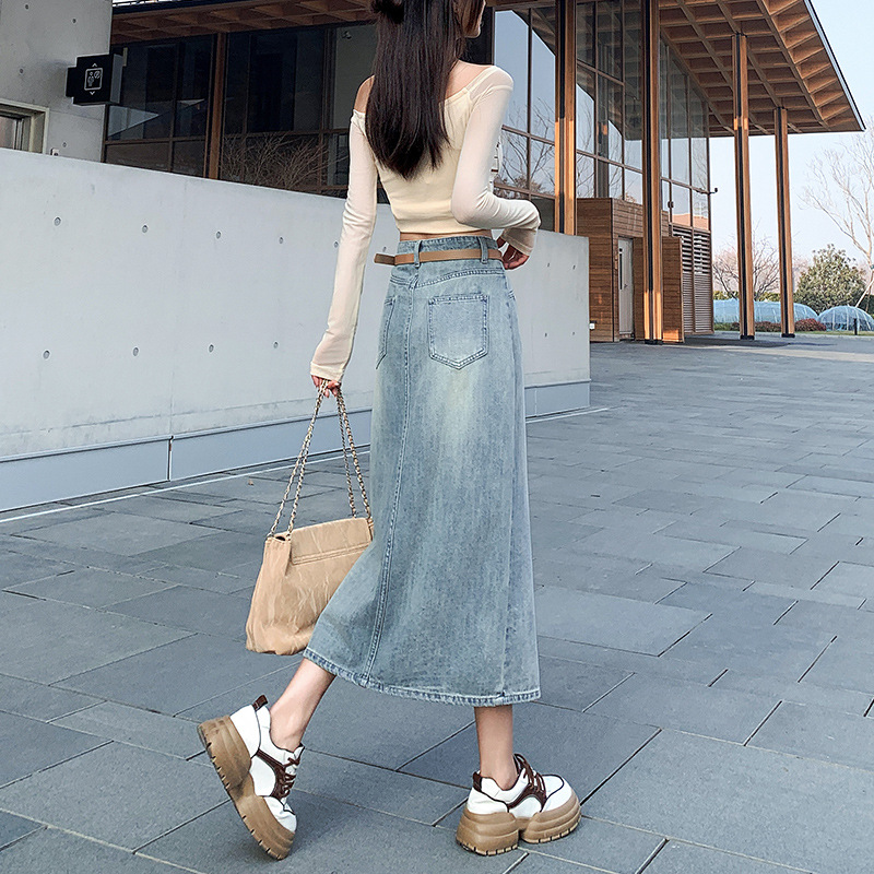 牛仔半身裙女春秋季2024年新款高腰显瘦中长裙开叉包臀半裙子女夏