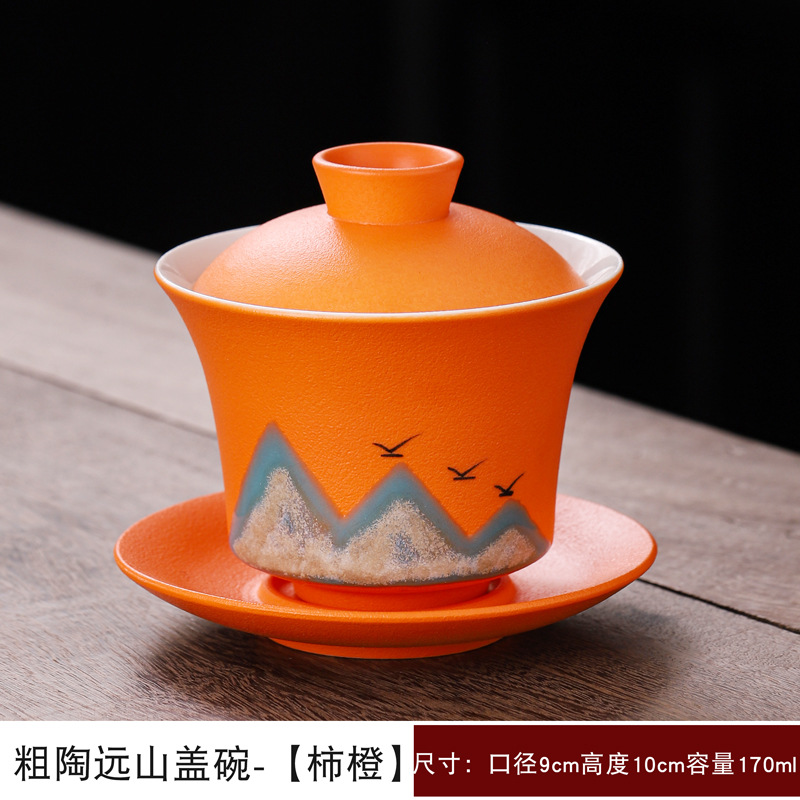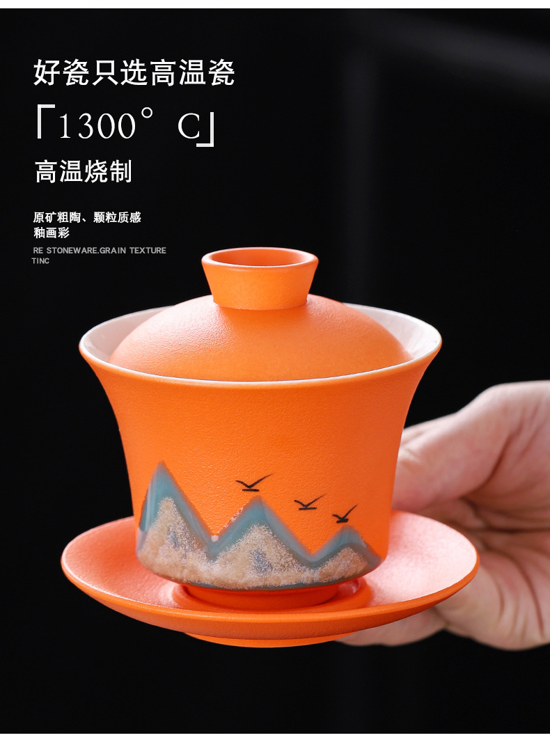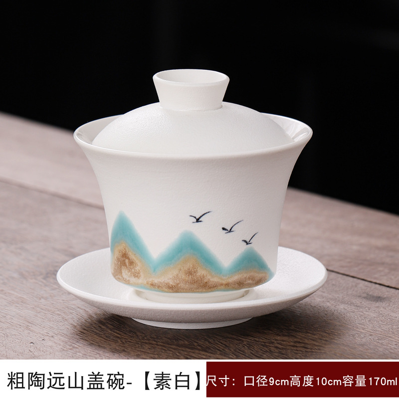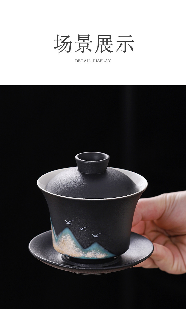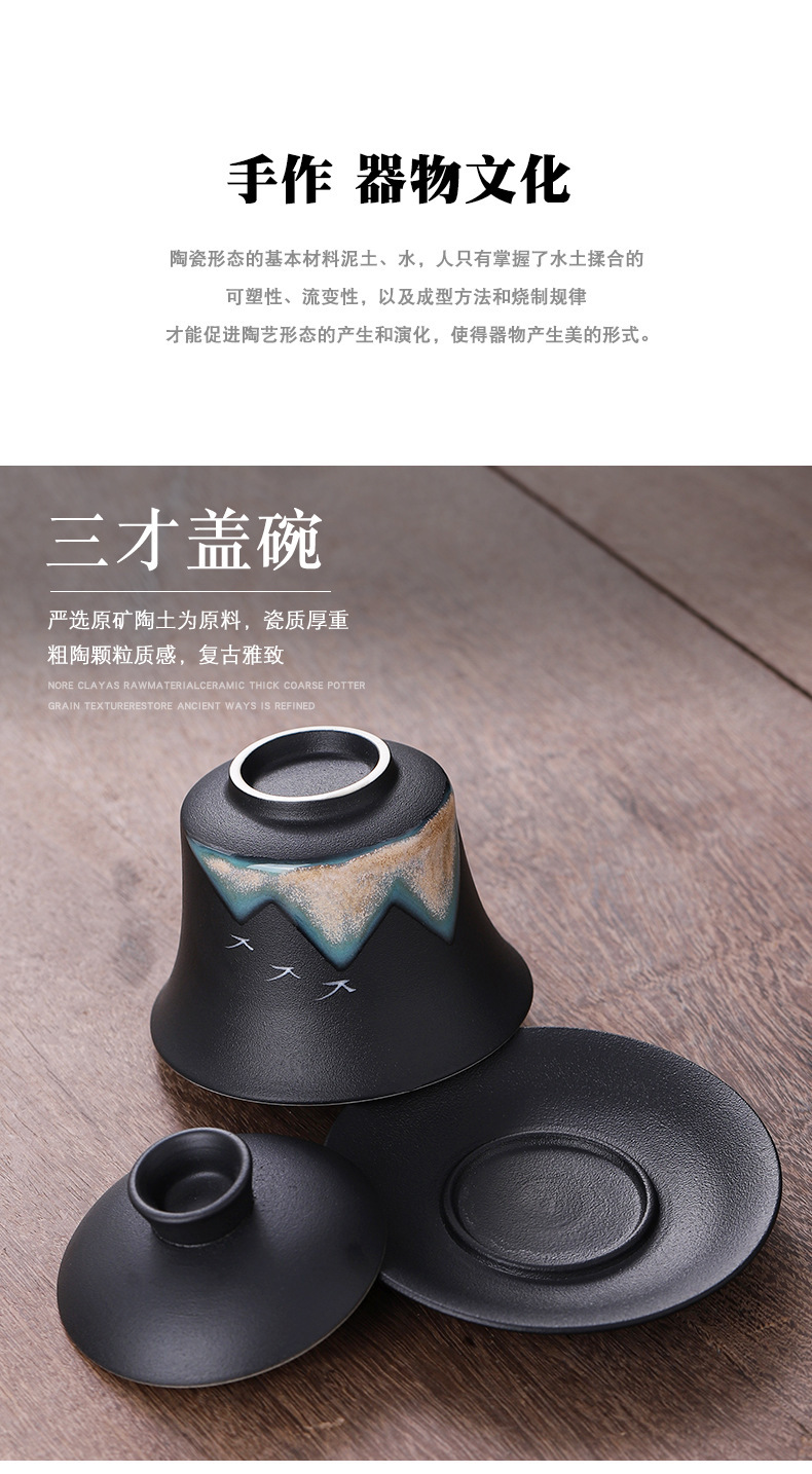 三才盖碗茶碗家用泡茶功夫茶茶具公室远山会客陶粗办公室茶器logo