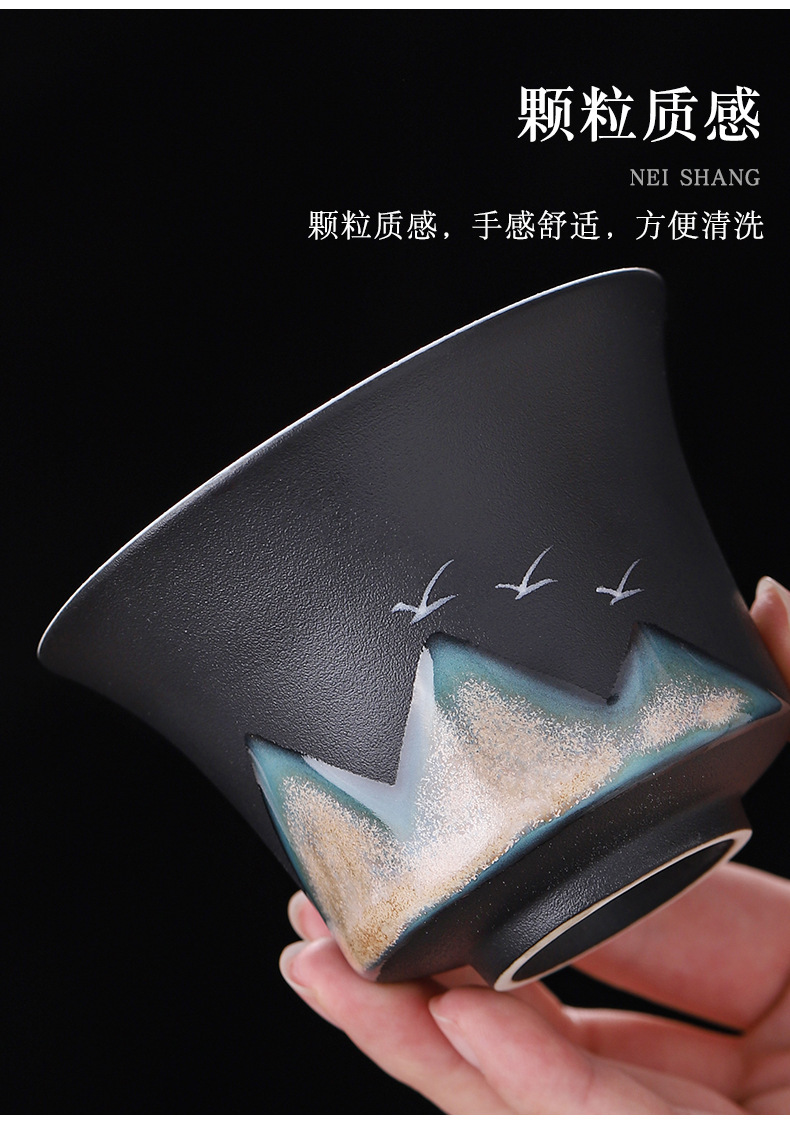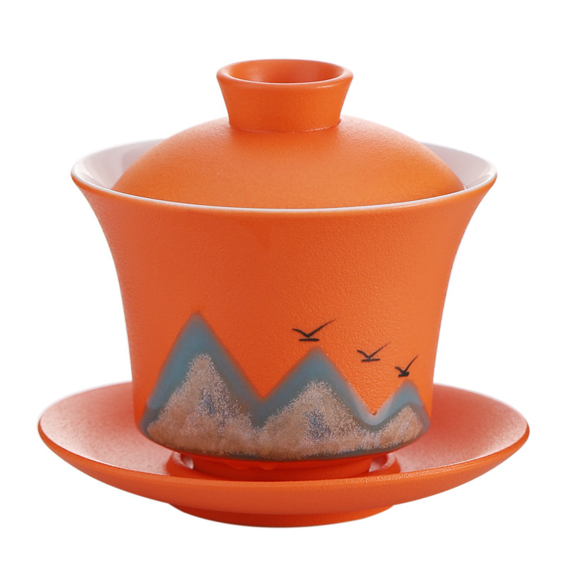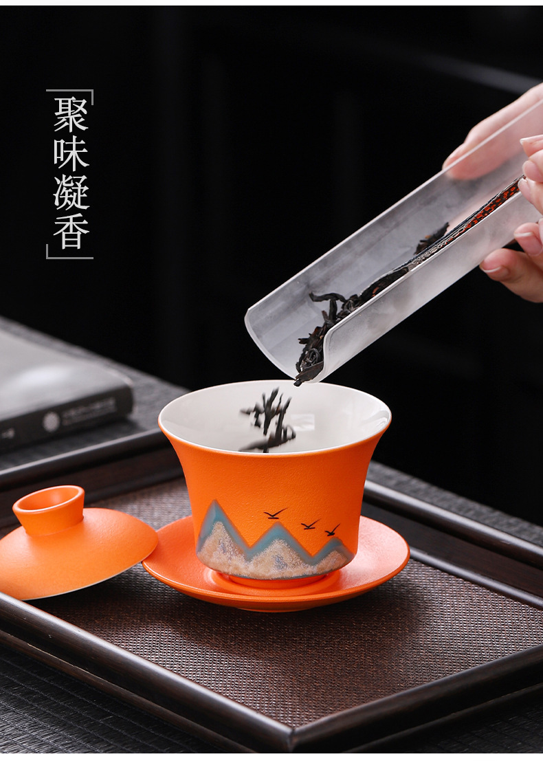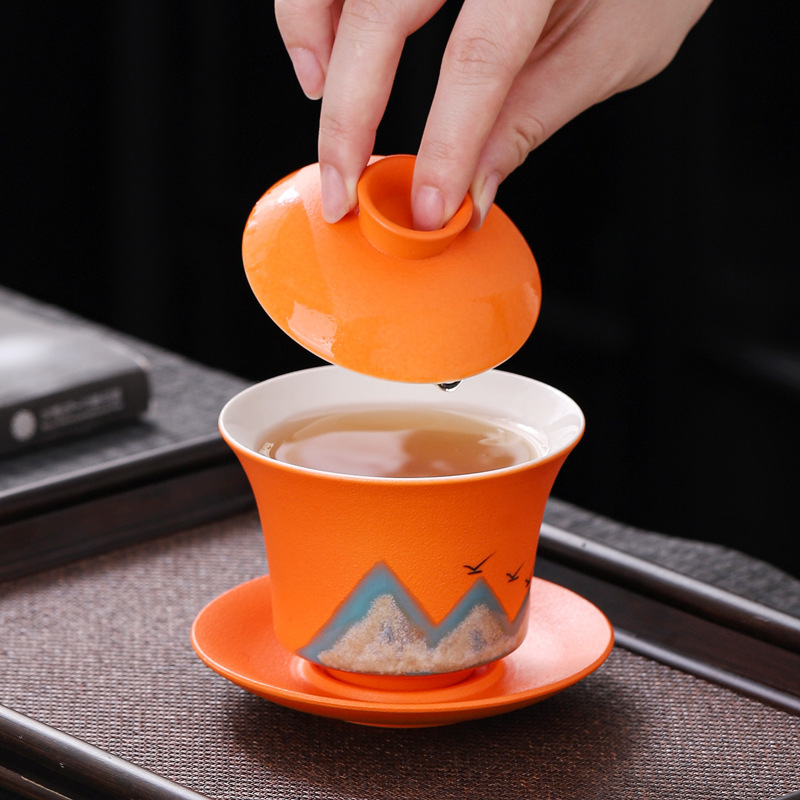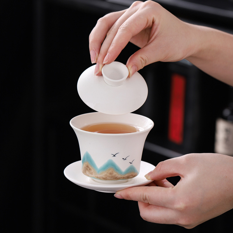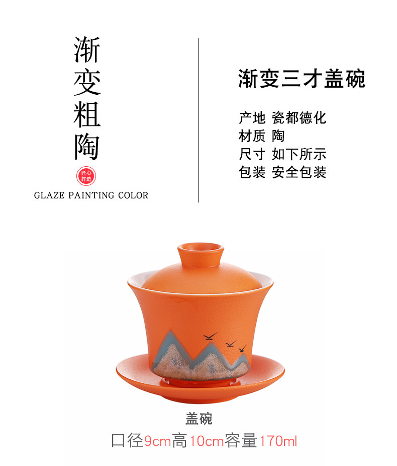 三才盖碗茶碗家用泡茶功夫茶茶具公室远山会客陶粗办公室茶器logo