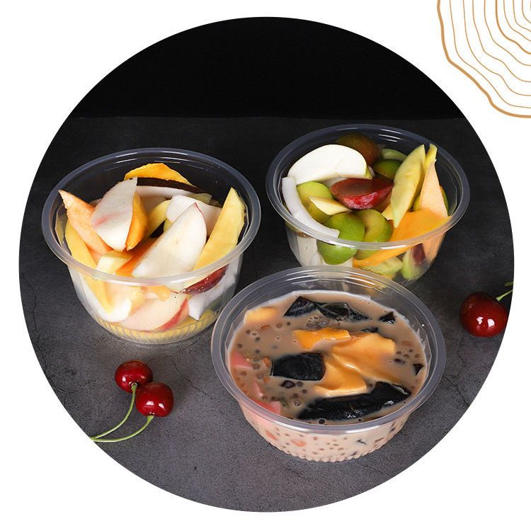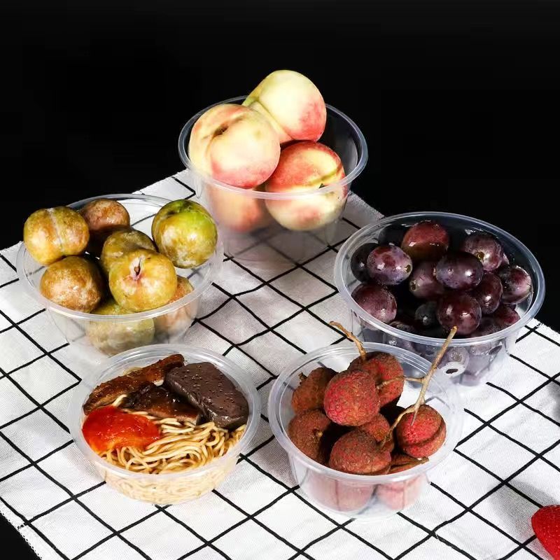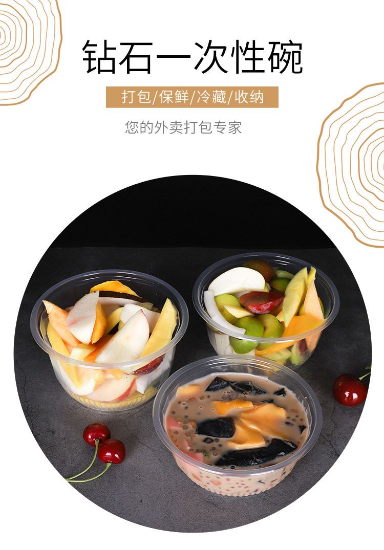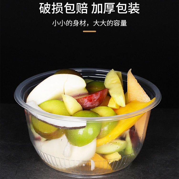 一次性碗圆形塑料碗带盖冰粉凉皮外卖打包餐盒家用酒席透明汤碗