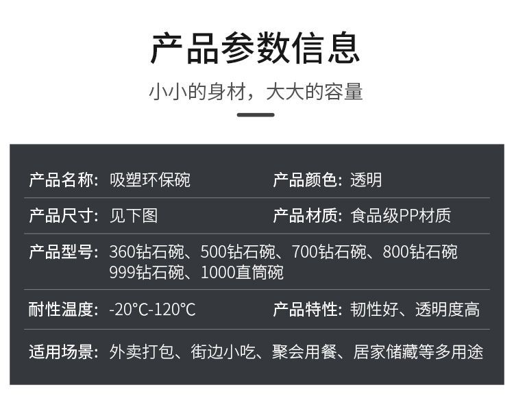 | 500 bowl type [without lid] 50(500碗型【无盖】50个) | USD $1.6 | 99999 piece available |