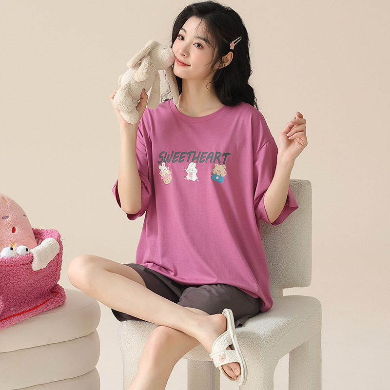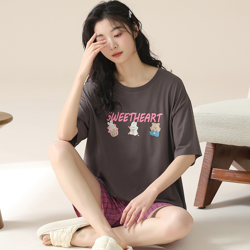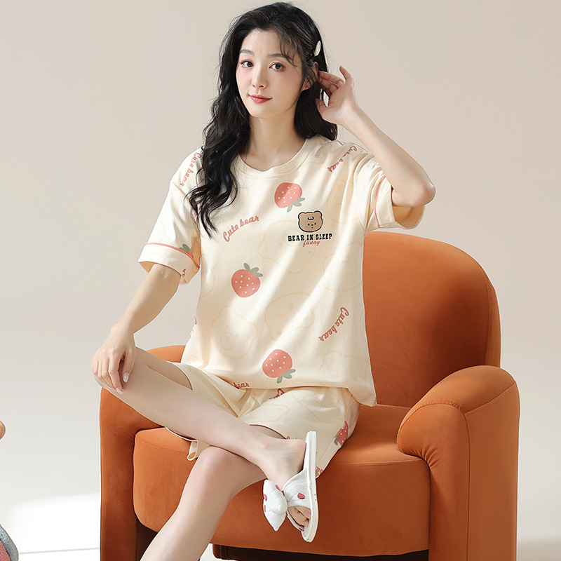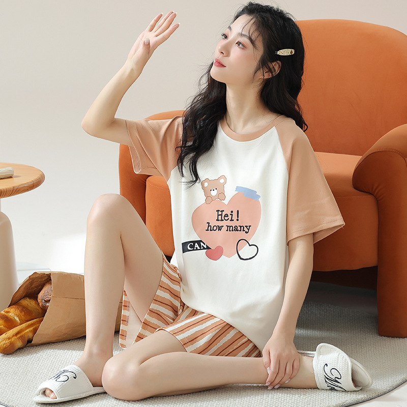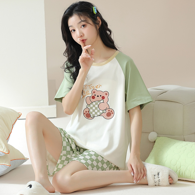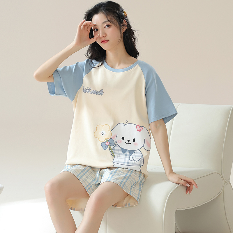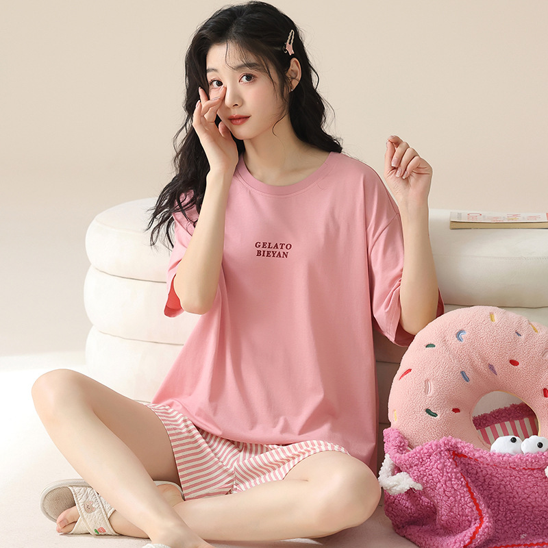 新品凉感纯棉睡衣女夏季透气薄款短袖短裤夏天可外穿家居服套装